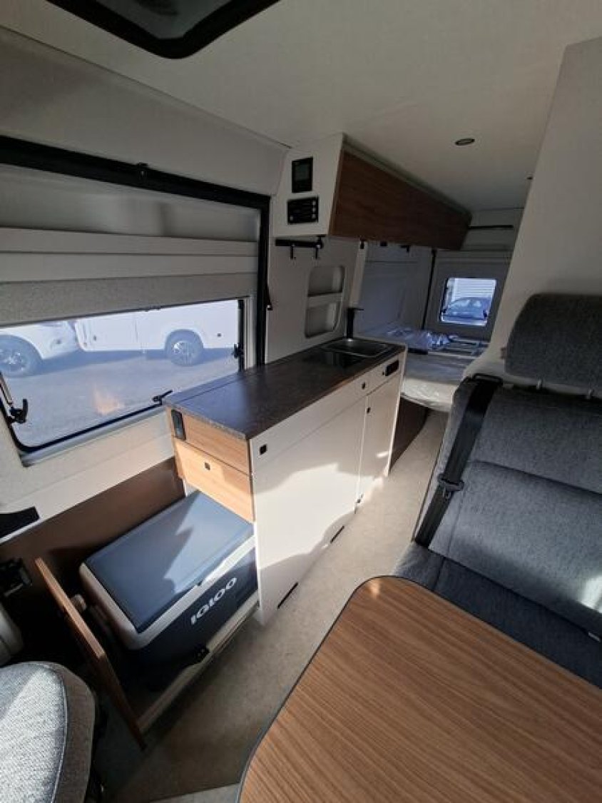 PACK CONFORT CELLULE Moustiquaire de porte coulissante Eclairage indirect Led Habillage des parois intérieures en tissu Baies à encadrement sur portes arrières Baie à encadrement arrière gauche Baies à encadrement espace dînette Baies sur porte coulissante Stores plissés occultants cabine Marchepied électrique, 700 mm : 5950 €