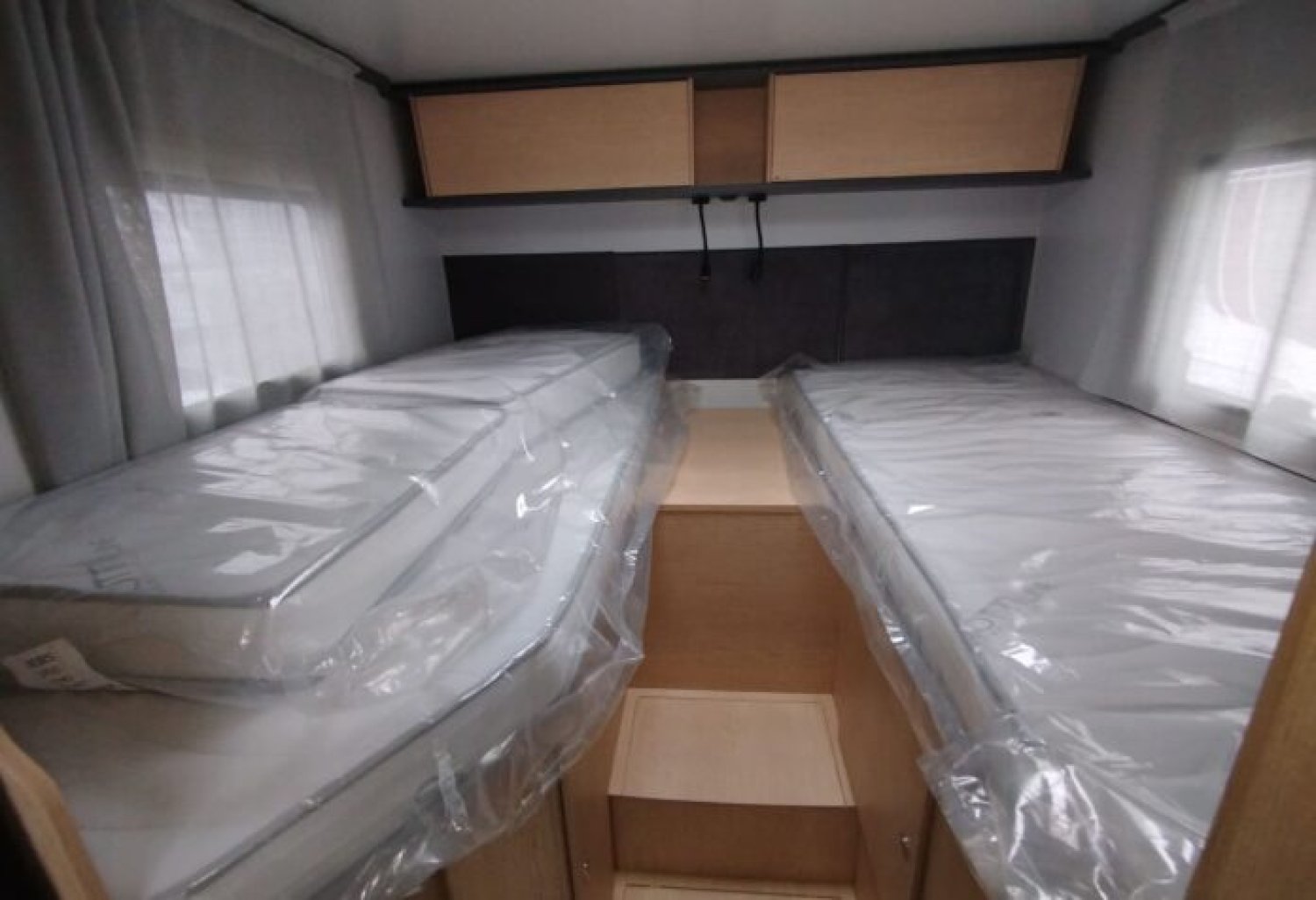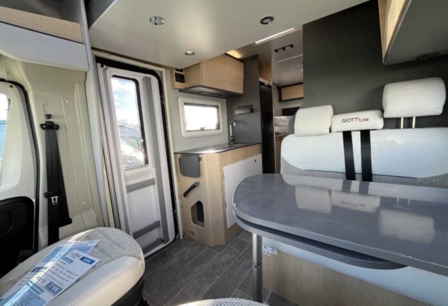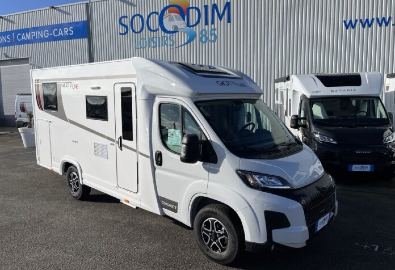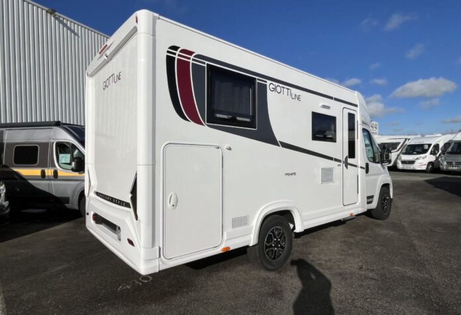 Le GIOTTILINE CX 66 PREMIERE EDITION est un profilé compact de 6,60 m de long sur porteur Peugeot Boxer 2,2 L 140 ch avec boîte automatique. Il offre 4 places carte grise et 4 couchages grâce aux lits jumeaux à l'arrière, le lit de pavillon ainsi que le couchage dinette convertible.
