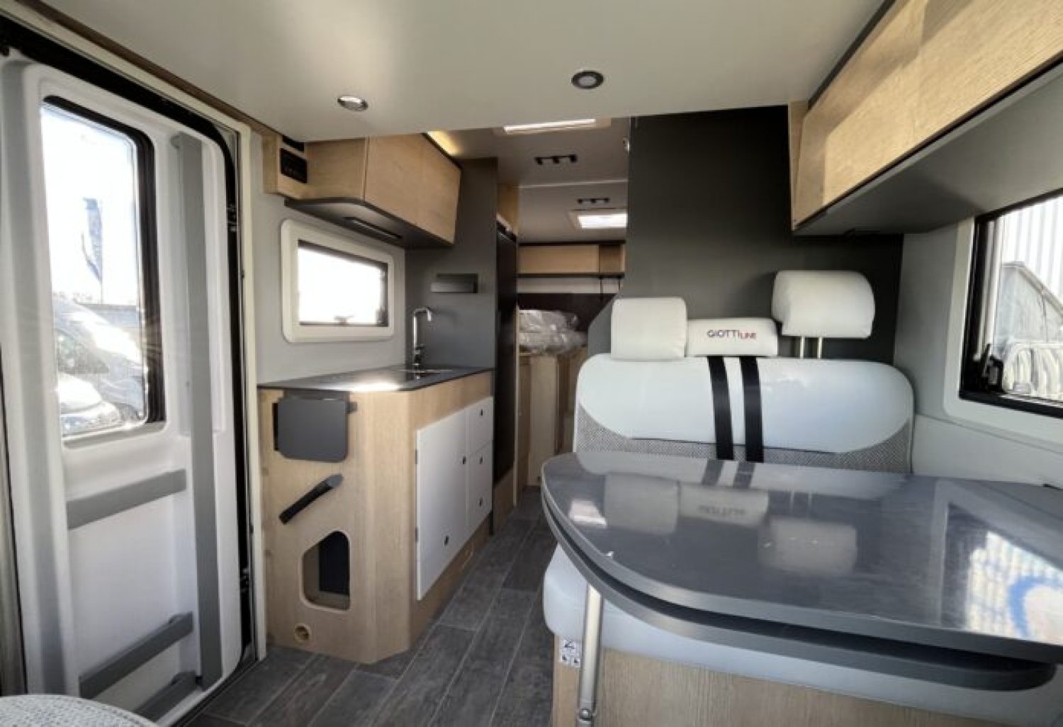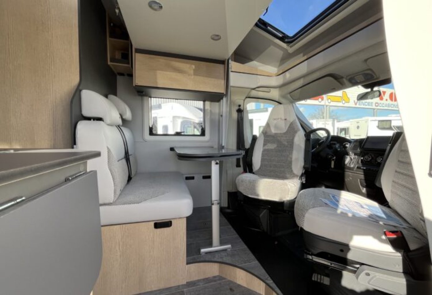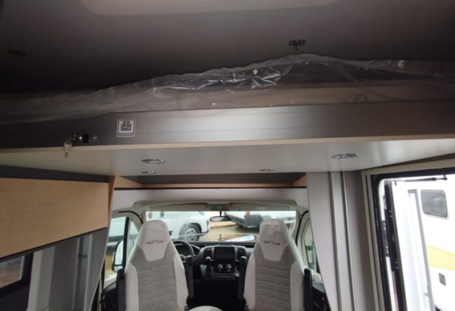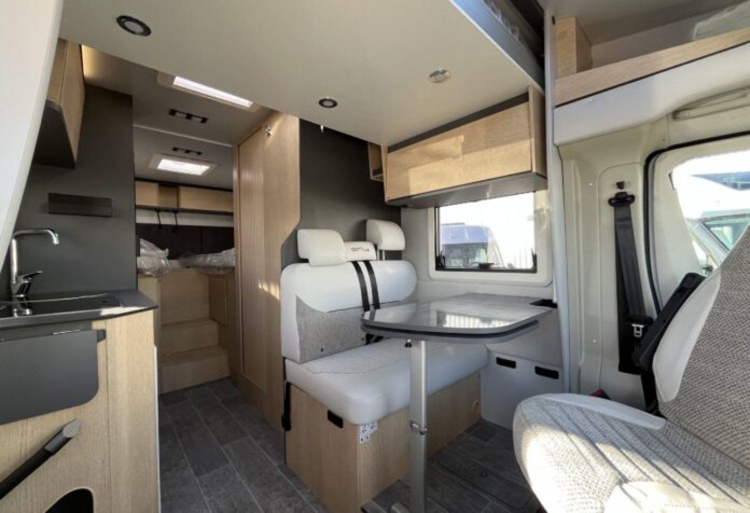 Le GIOTTILINE CX 66 PREMIERE EDITION est un profilé compact de 6,60 m de long sur porteur Peugeot Boxer 2,2 L 140 ch avec boîte automatique. Il offre 4 places carte grise et 4 couchages grâce aux lits jumeaux à l'arrière, le lit de pavillon ainsi que le couchage dinette convertible.