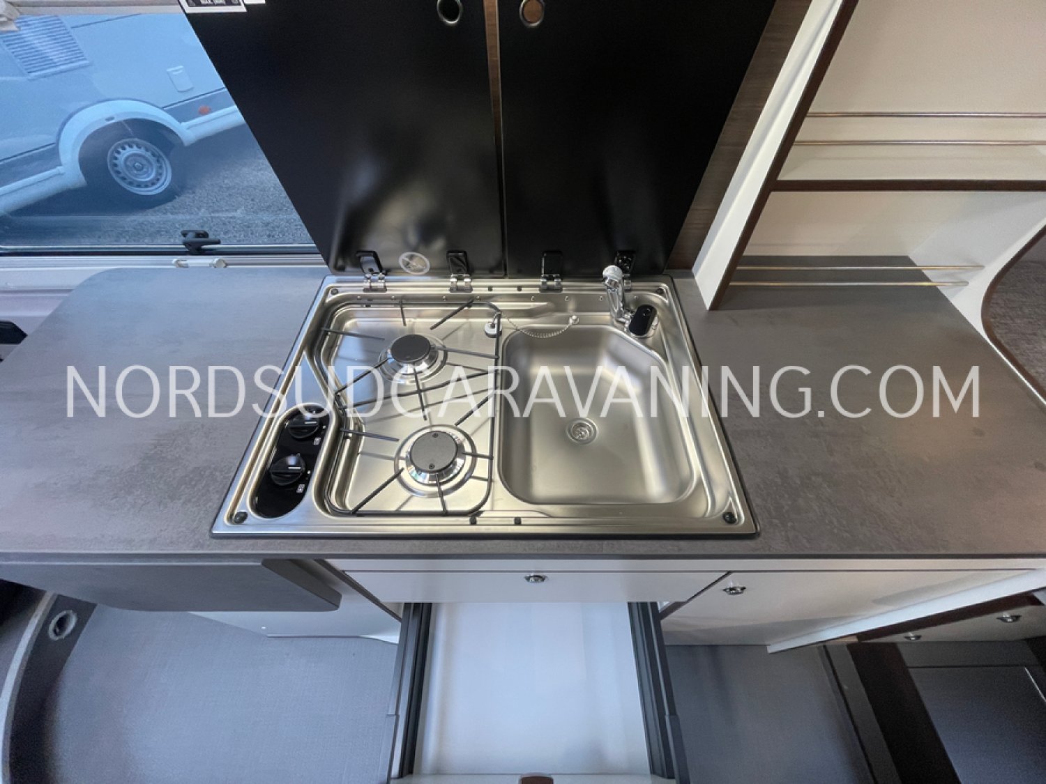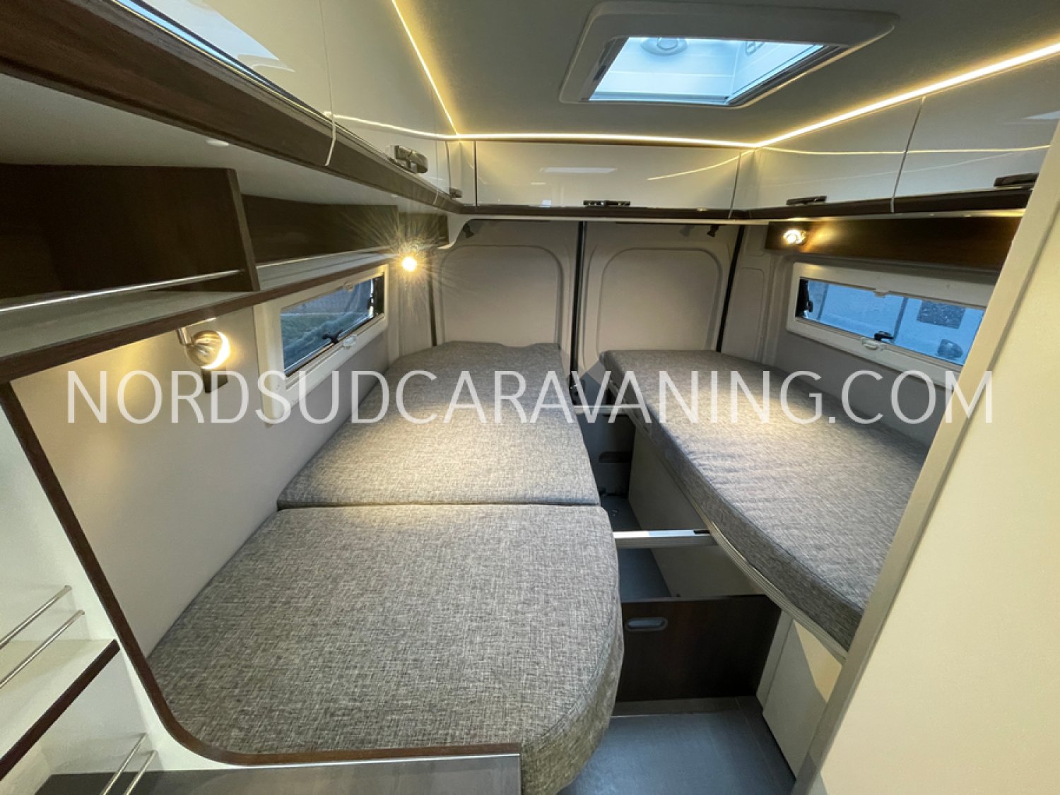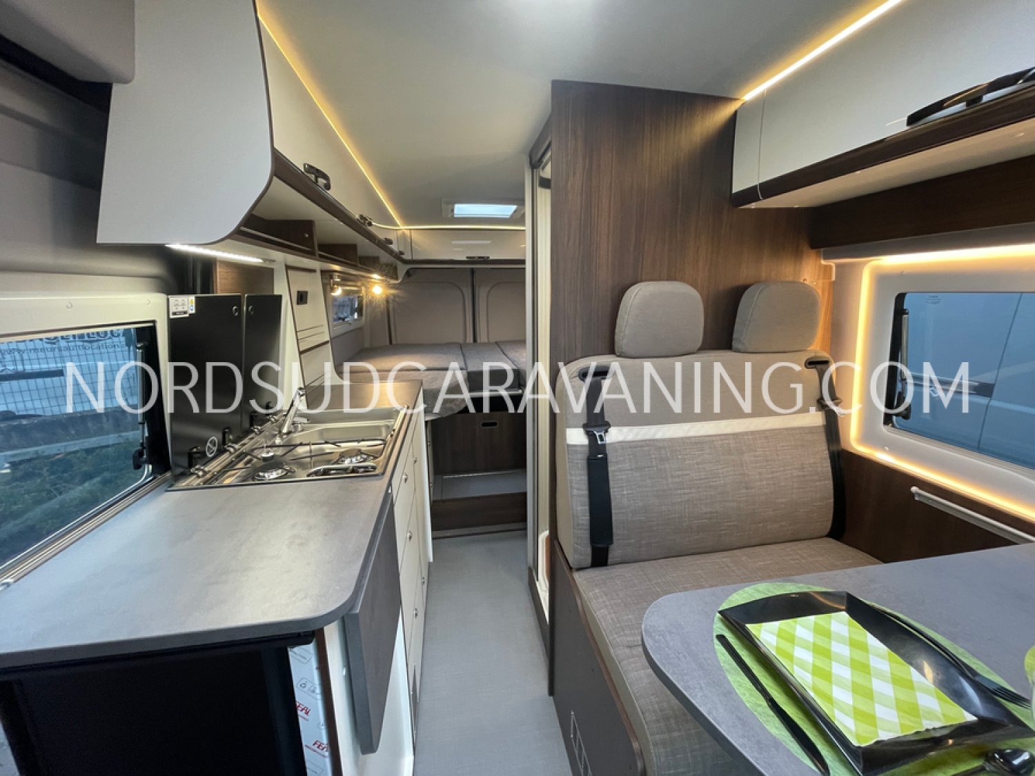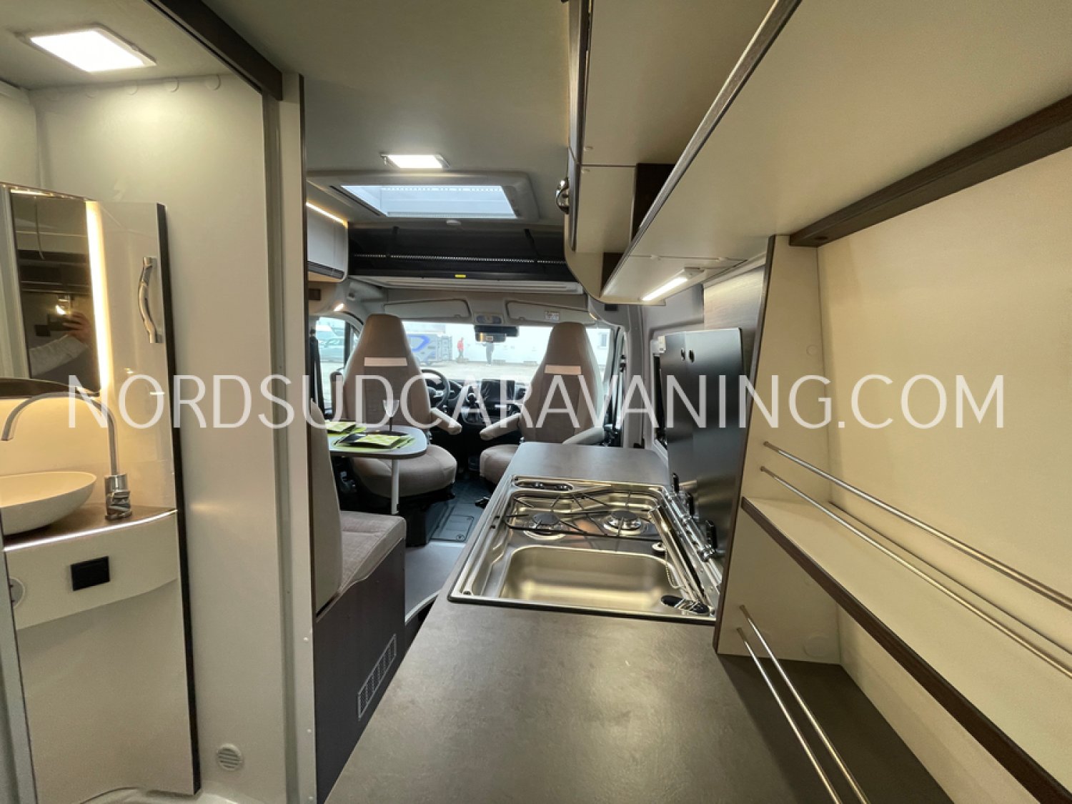 Sa dinette agréable et lumineuse pour une ambiance conviviale. Sa cuisine latérale pratique et fonctionnelle est équipée d’un réchaud 2 feux, évier, réfrigérateur 98L et plan de travail rabattable. En face, une salle de bain avec WC, lavabo, caillebotis et une douche vario. A l’arrière, ce sont des lits jumeaux, pour des nuits confortables et agréables. Sans oublier ses nombreux rangements astucieux !