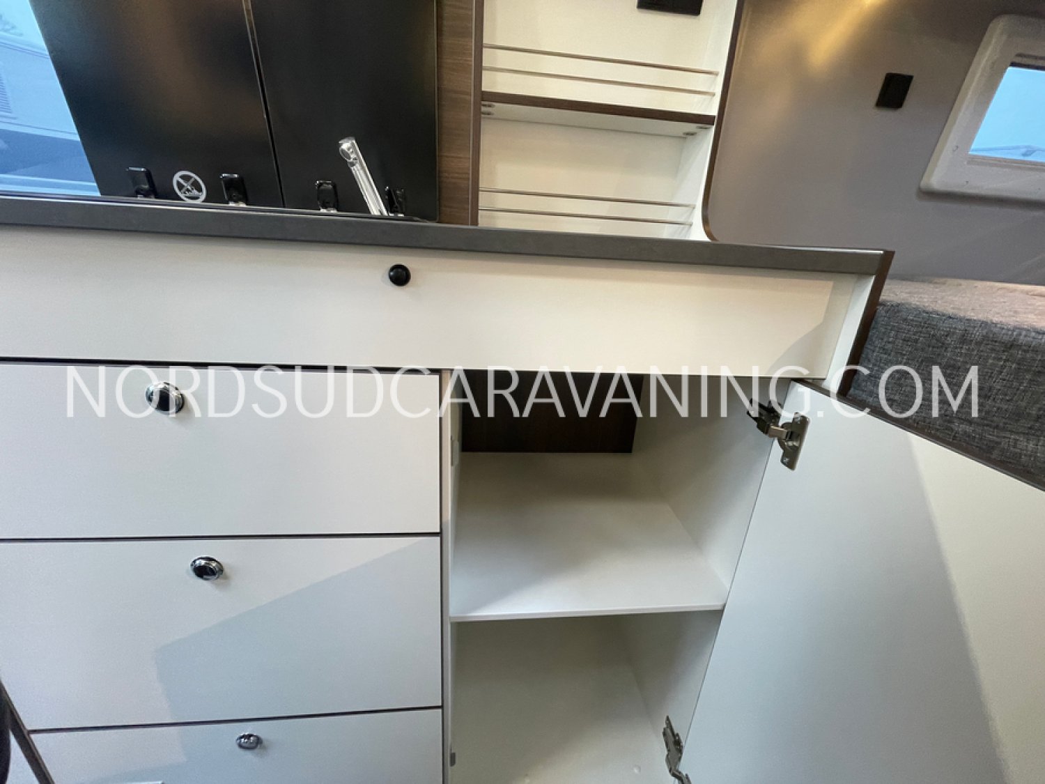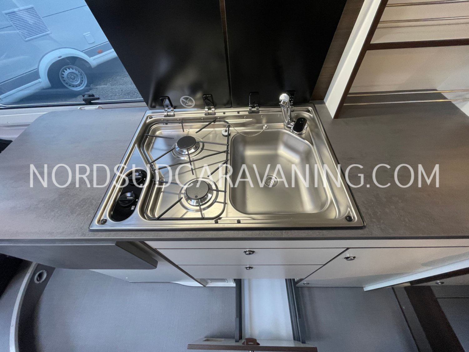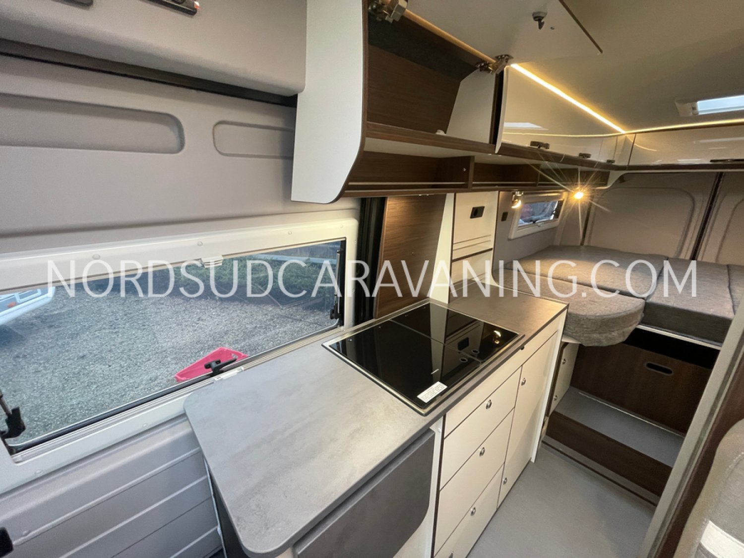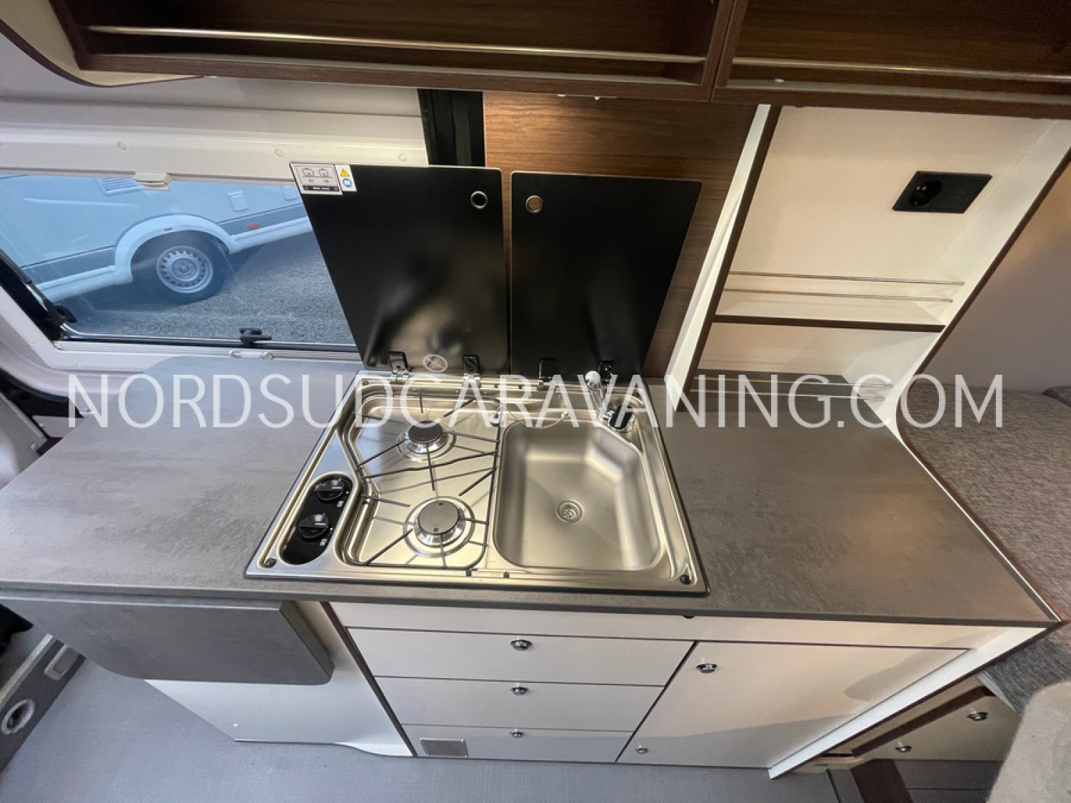 Sa dinette agréable et lumineuse pour une ambiance conviviale. Sa cuisine latérale pratique et fonctionnelle est équipée d’un réchaud 2 feux, évier, réfrigérateur 98L et plan de travail rabattable. En face, une salle de bain avec WC, lavabo, caillebotis et une douche vario. A l’arrière, ce sont des lits jumeaux, pour des nuits confortables et agréables. Sans oublier ses nombreux rangements astucieux !