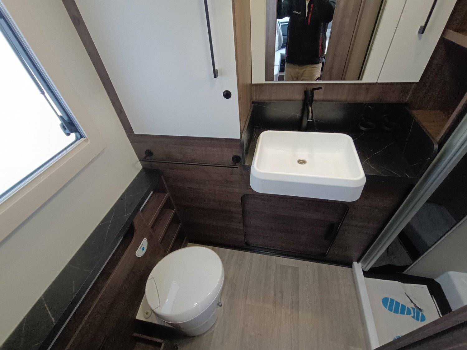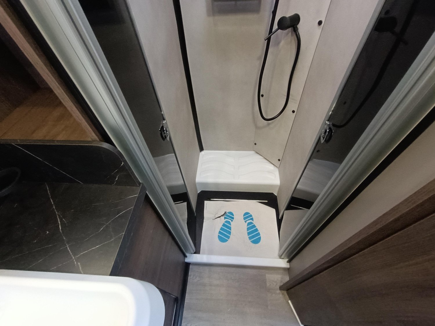Il est très spacieux, avec une belle douche séparée en fond du véhicule