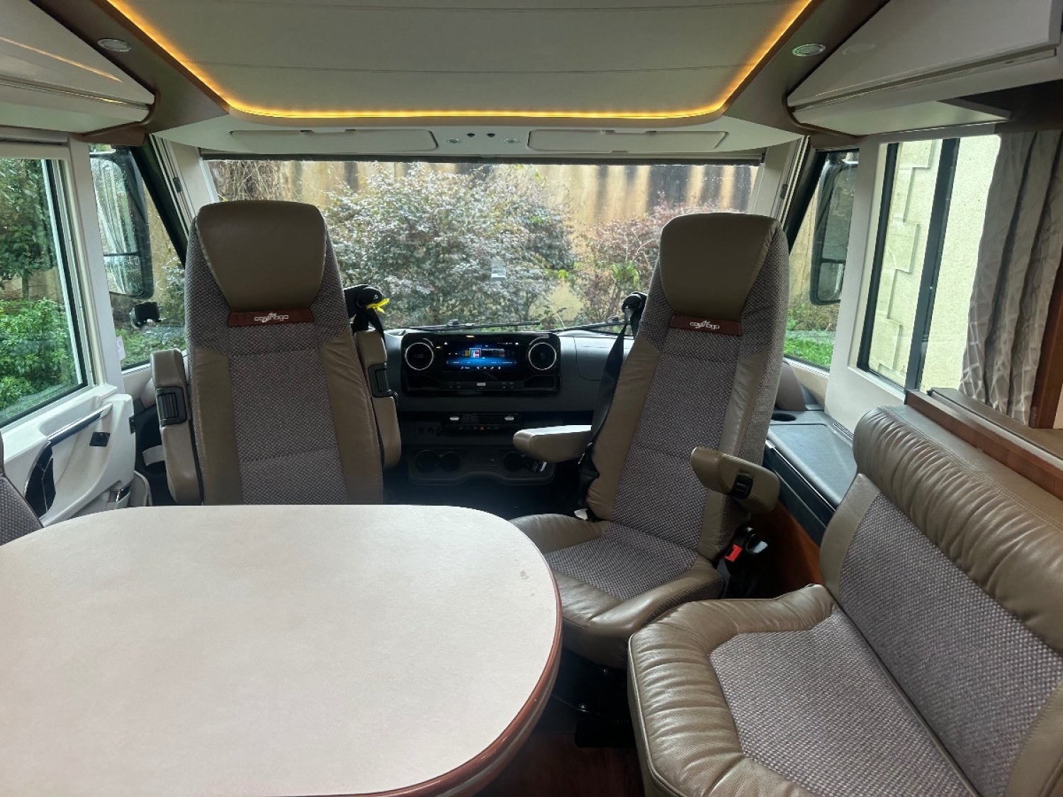 État neuf full options (+60000€) 5 places,CG, cinq couchages,vérinshydraulique,caméra, drone, View, 360°., pack Mercedes,,climatisation ,2 Televisions,caméra eau usée,cuir Macchiato,broyeur WC, attelage, GPL, roue de secours deux batteries lithium, deux panneaux solaires