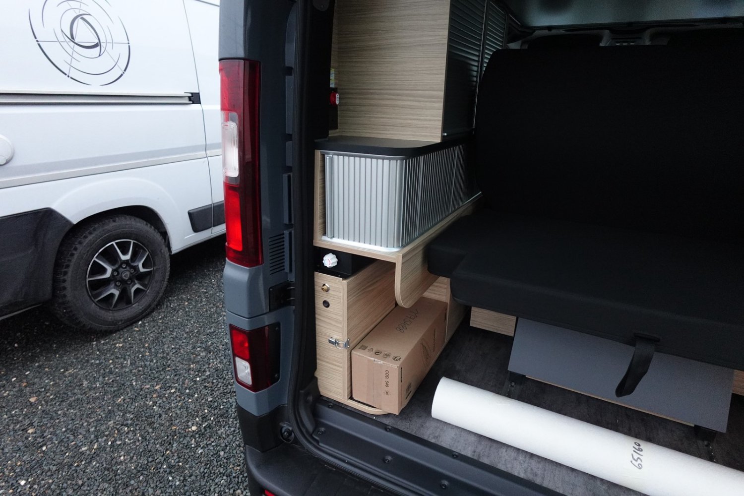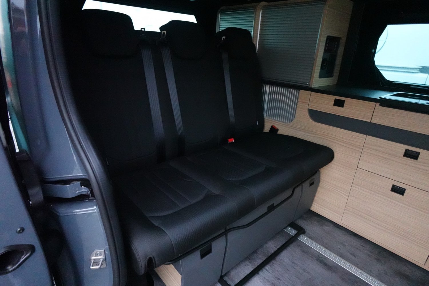 Grands tiroirs de rangement sous la banquette arrière
