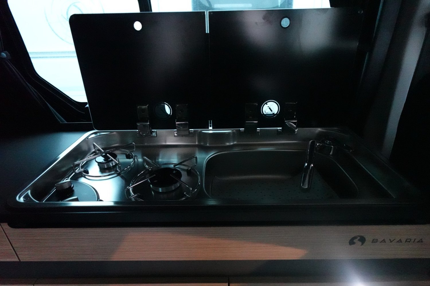 Réchaud 2 feux + évier avec couvercle en verre