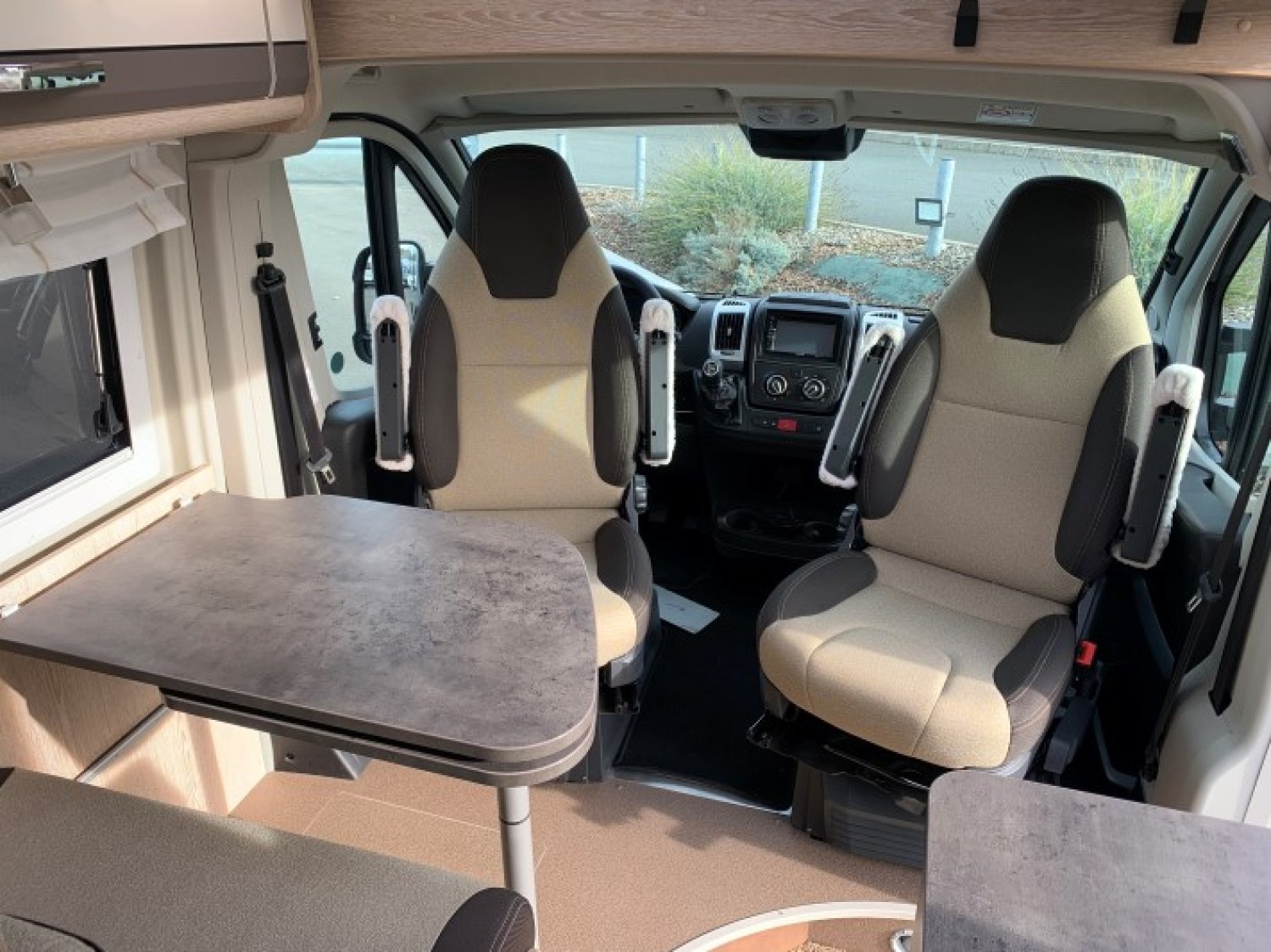 - Sièges cabine réglables en hauteur et en inclinaison, pivotants avec deux accoudoirs