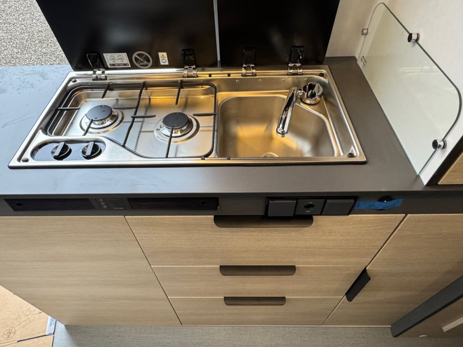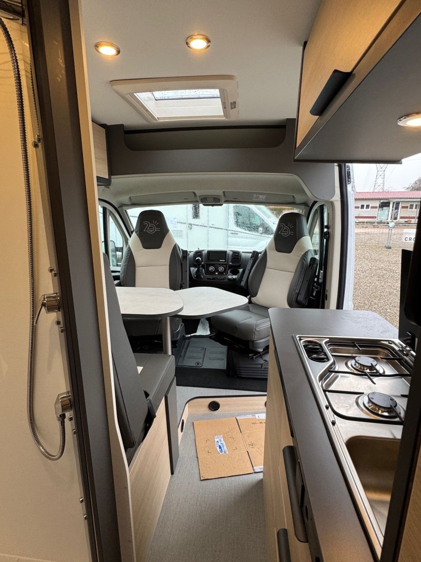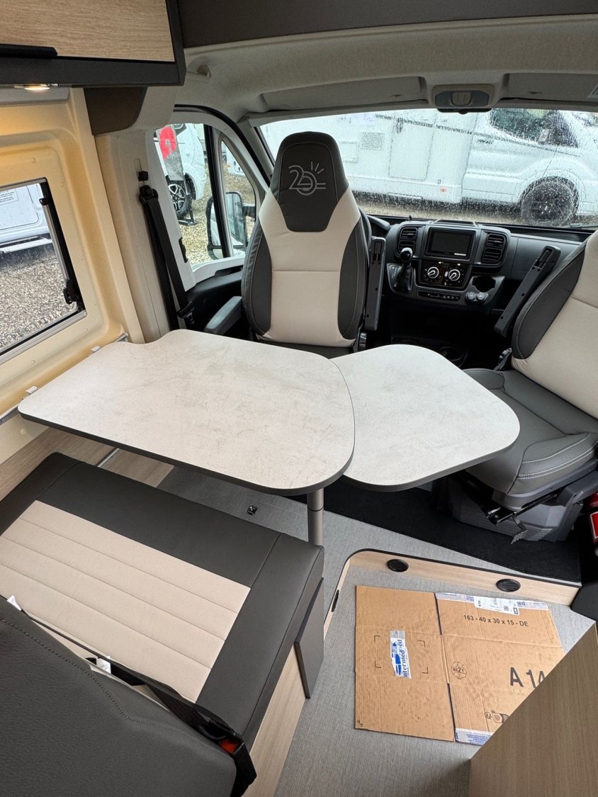 - Pack start: marchepied électrique, stores pare-brise et baies cabine double plissés à cassette, porte moustiquaire ouvrant latéral