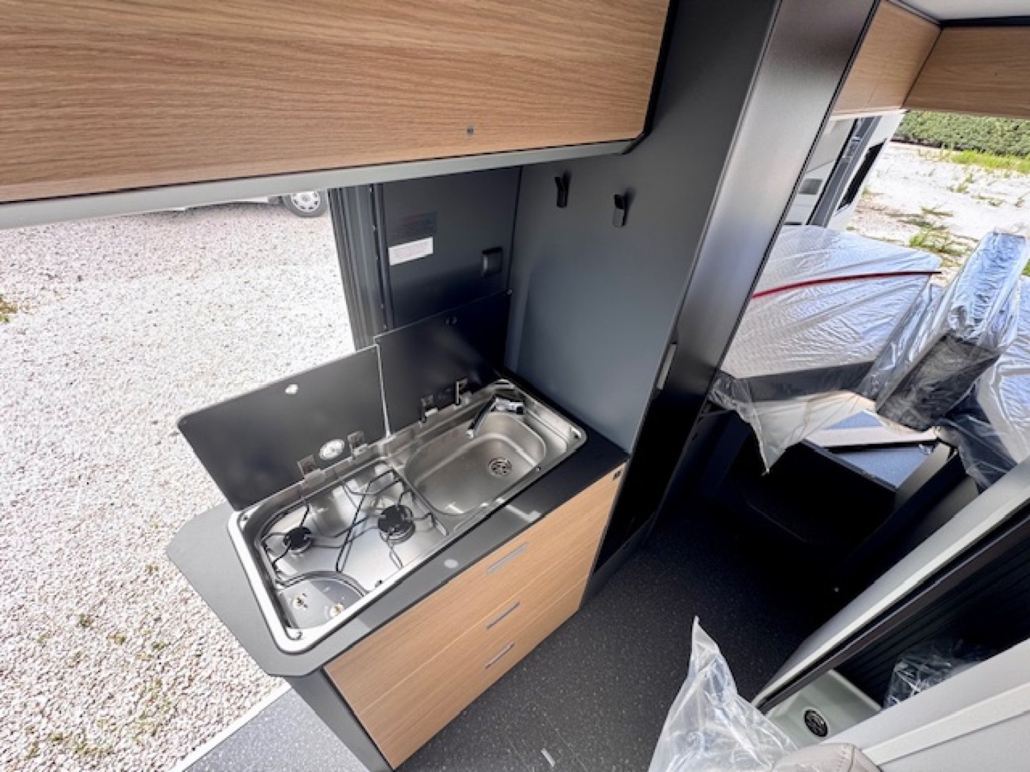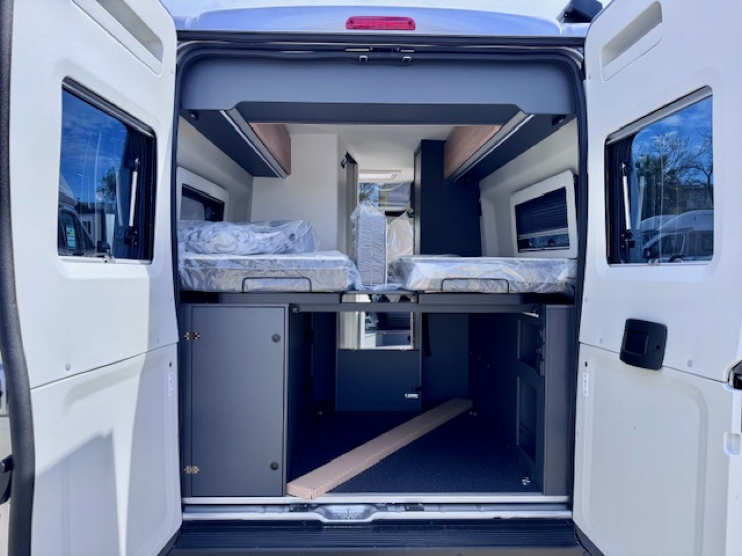 Toujours très équipé en série avec sa porte cellule avec moustiquaire, ses stores de cabine Remis, sa climatisation manuelle Fiat, ses baies fumées affleurantes, ABS, double airbag, .... il saura satisfaire le client exigeant sur la qualité et l'équipement avec un chauffage/chauffe-eau au gaz Truma Combi 4.