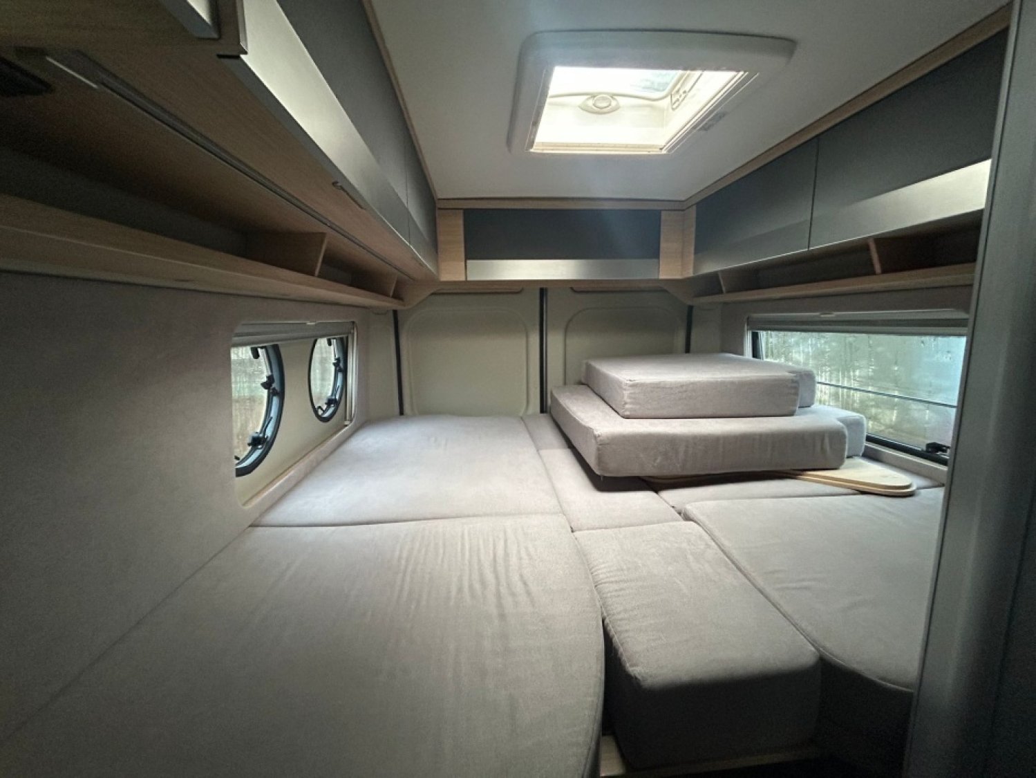 Avec son lit jumeau permettant d'avoir soit un lit séparé soit un couchage king size, véhicule très spacieux avec sa découpe de toit