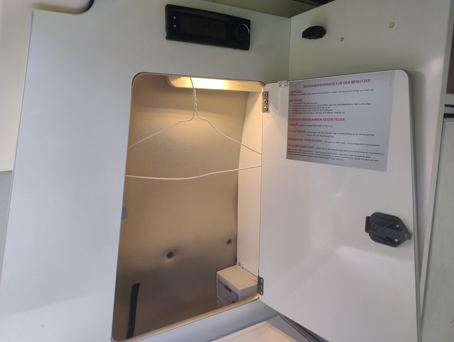 CHAUFFAGE CARBURANT, GAZINIERE 2 FEUX, DOUCHETTE EXTERIEURE, ECLAIRAGE LED, STORES PLISSES DE CABINE, VOLET ISOTHERME INTERIEUR, REFRIGERATEUR 12V A COMPRESSION