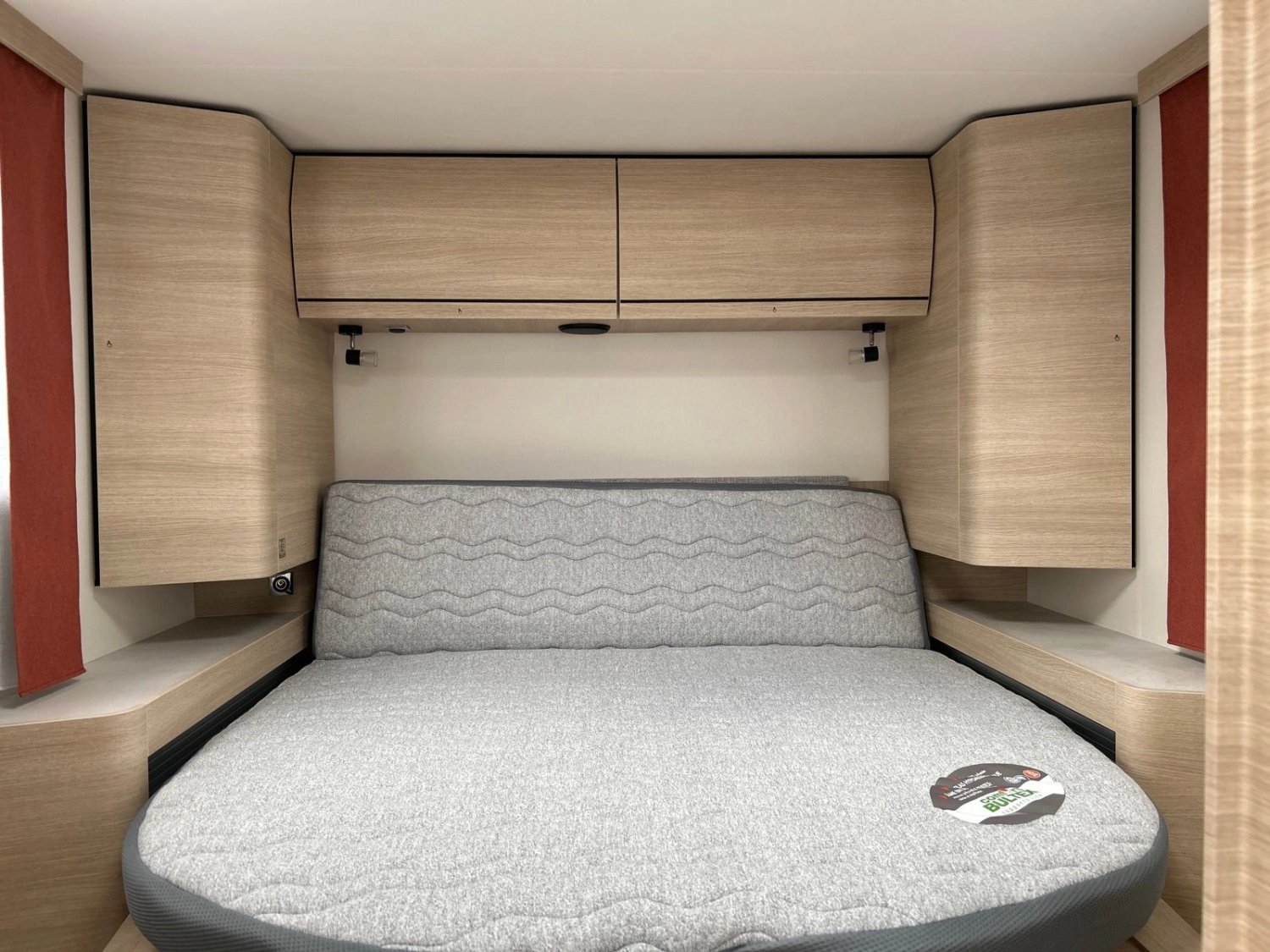 • Lit permanent avec sommier à cadre aluminium avec lattes actives et matelas mousse BULTEX® à haute résilience