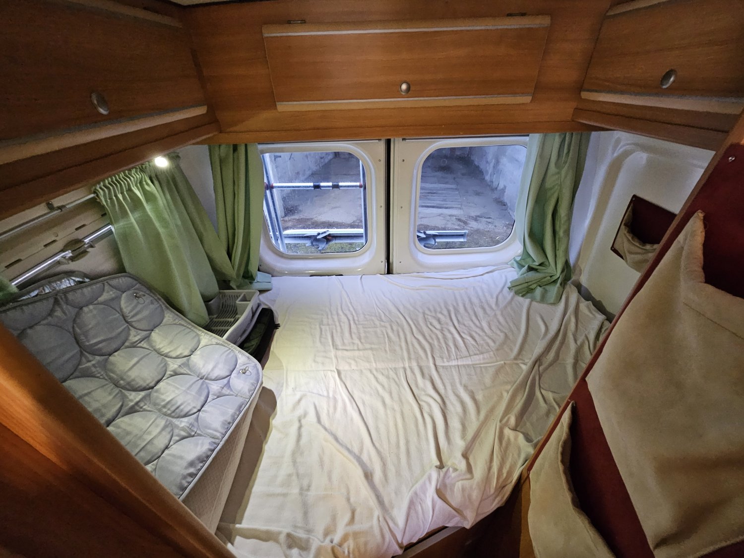 CHAUFFAGE CARBURANT, GAZINIERE 2 FEUX, ECLAIRAGE LED, PORTE VELO, REFRIGERATEUR TRI MIX, STORES PLISSES DE CABINE