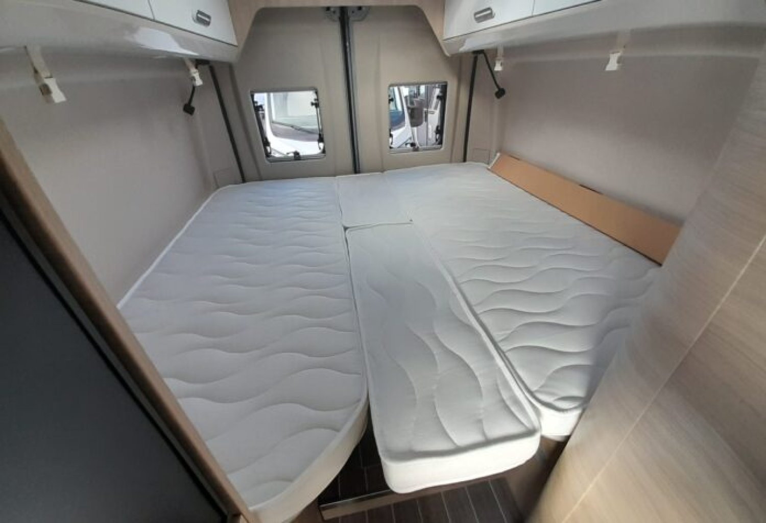 - Pack Comfort (housses de sièges cabine, lanterneau Midi-Heki en dînette, porte moustiquaire, marchepied électrique, stores occultant de cabine plissés)