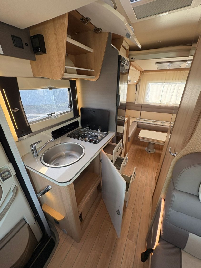 Magnifique profilé Mac Louis MC-4 330 avec salon en U transformable en couchage et lit Pavillon, il possède aussi un lit pavillon a l'avant et banquette transformable, il mesure seulement 6.49 m de gabarit, vous pouvez dormir a 6 personnes.