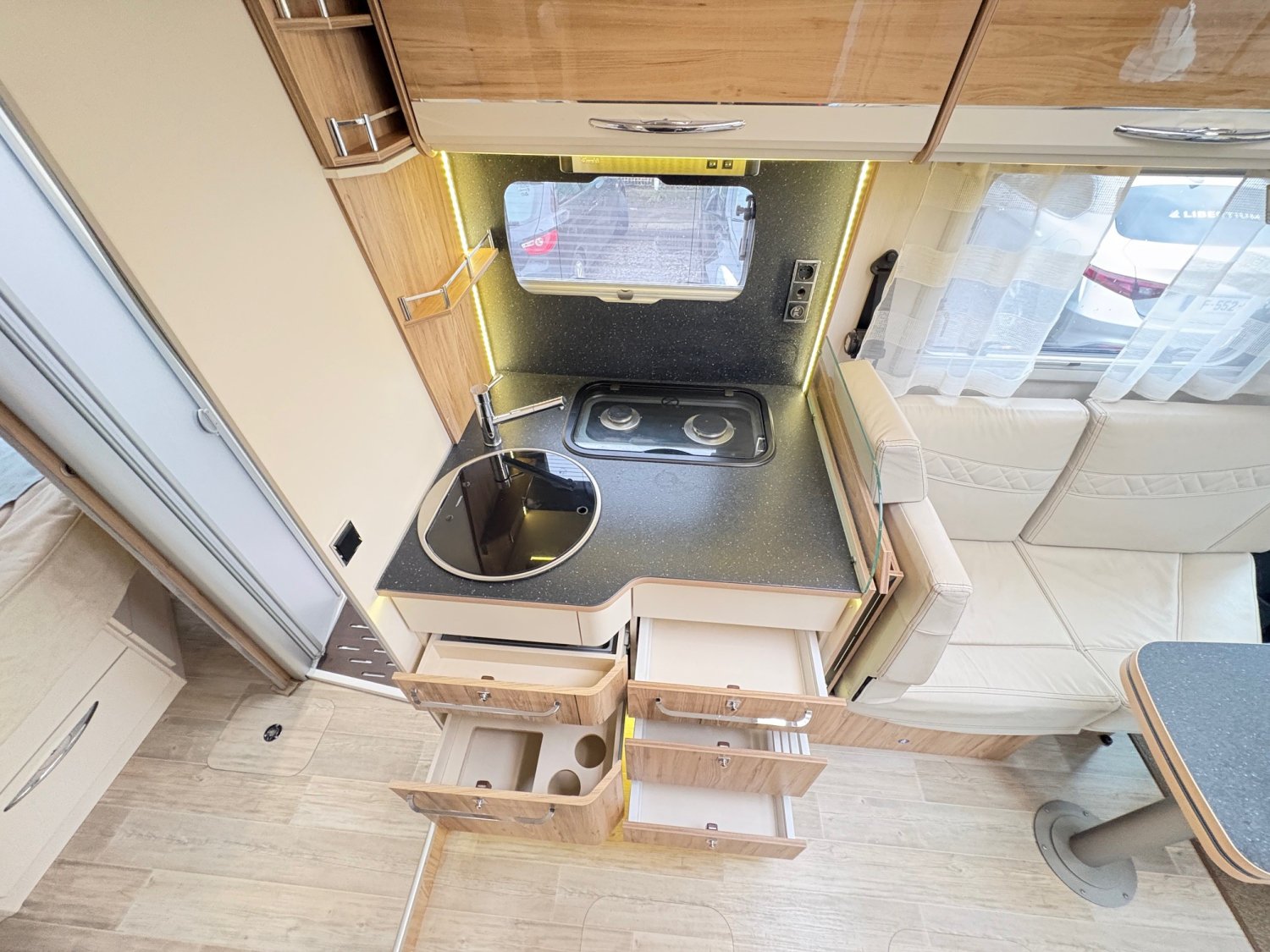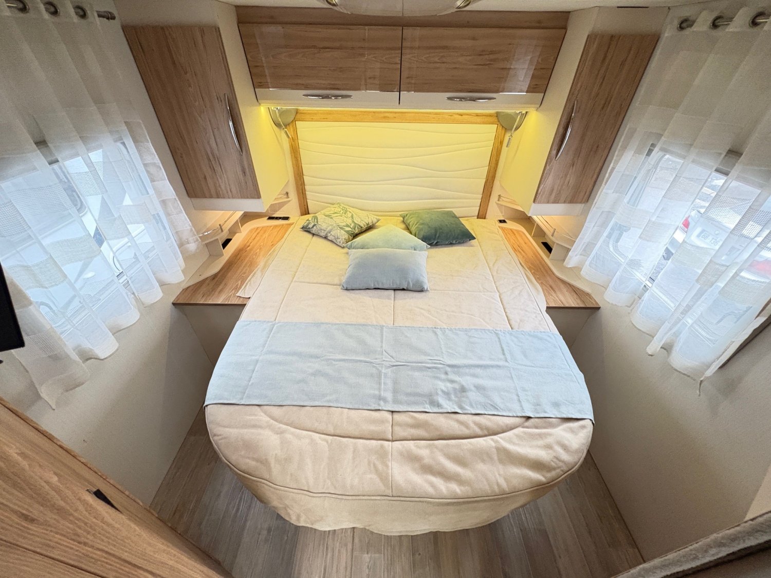 CLIMATISATION CELLULE, CAMERA RECUL, ATTELAGE, HOTTE ASPIRANTE, ANTENNE SAT AUTO, STORE EXTERIEUR, 2 TV SALON + CHAMBRE, JANTES ALU, TIROIR DE BAS DE CAISSE, PANNEAUX SOLAIRES, STORE OCCULTANT CABINE, CHAUFFAGE GAZ, STATION MULTIMEDIA, SUSPENSION PNEUMATIQUE, MOUSTIQUAIRE DE PORTE, DUO CONTROL GAZ, BATTERIE CEL 150A, HAUT PARLEUR AR, FRIGO TRIMIX AUTO, MARCHE PIED ELECTRIQUE