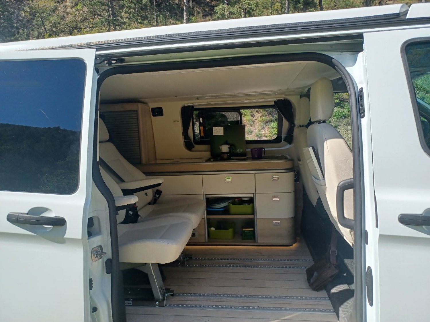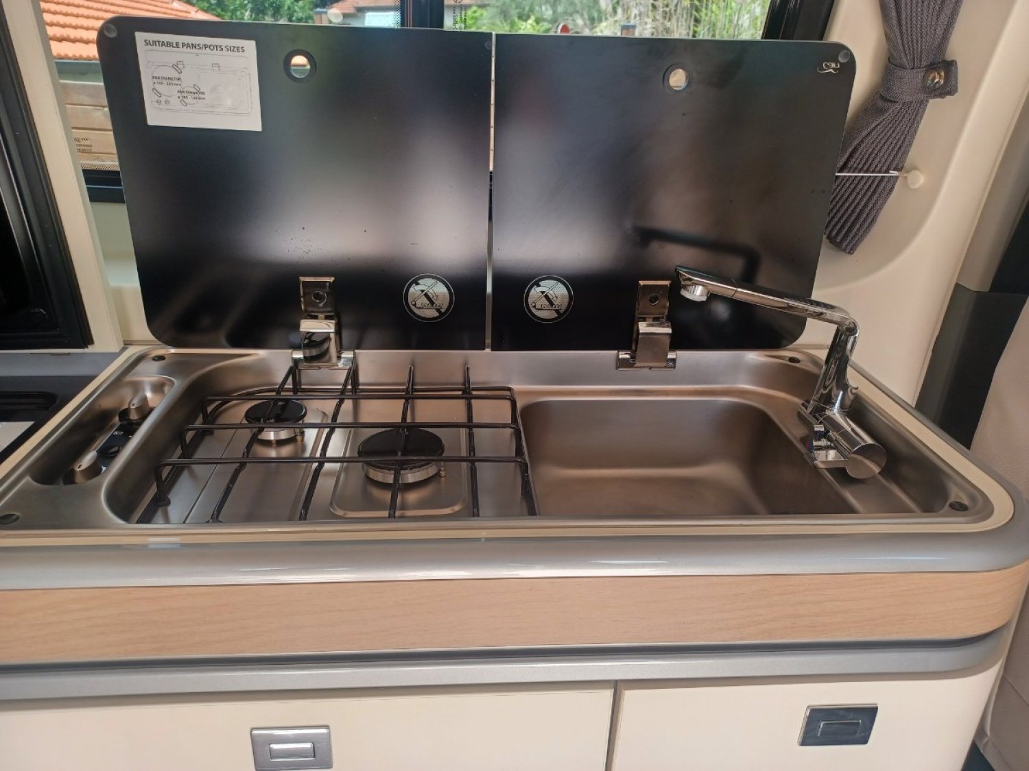 Une réserve d'eau propre de 40l, un réservoir d'eaux usées 30 l, et de nombreux rangements, prise UBS et 230v.