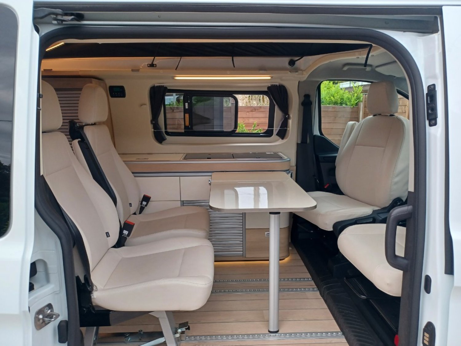 Les sièges avant pivotants sont en cuir et chauffant. À l'arrière 2 sièges en cuir coulissants sur rails, facilement modulable.