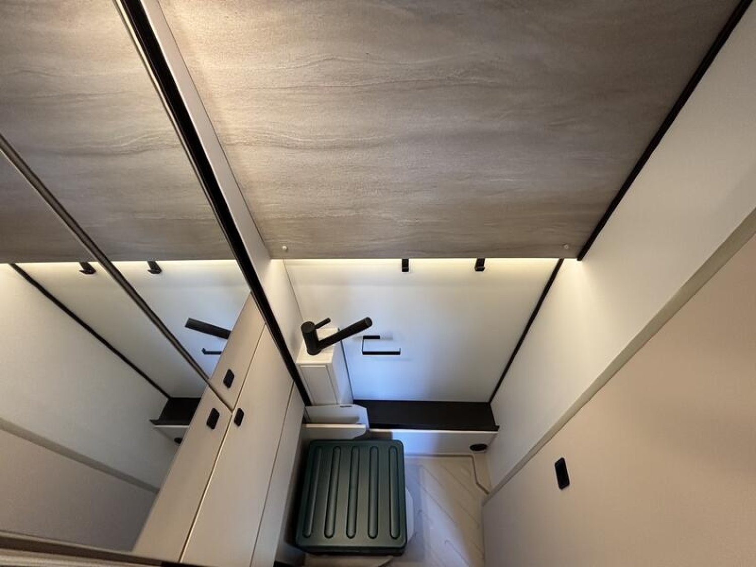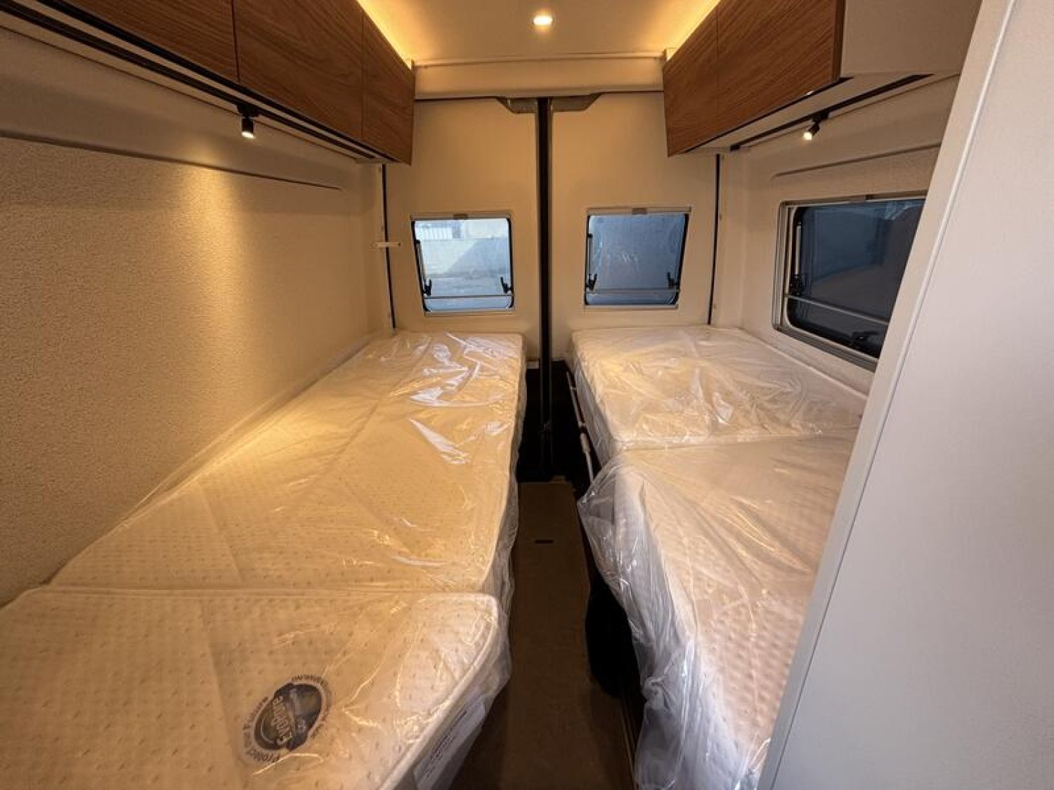 PACK CONFORT CELLULE Eclairage indirect Led Baies à encadrement Batterie Lithium 100 Ah Extension du plan de travail cuisine Transformation des lits jumeaux en grand couchage arrière Habillage des parois intérieures en tissu Stores plissés occultants cabine Moustiquaire de porte coulissante : 3015 €