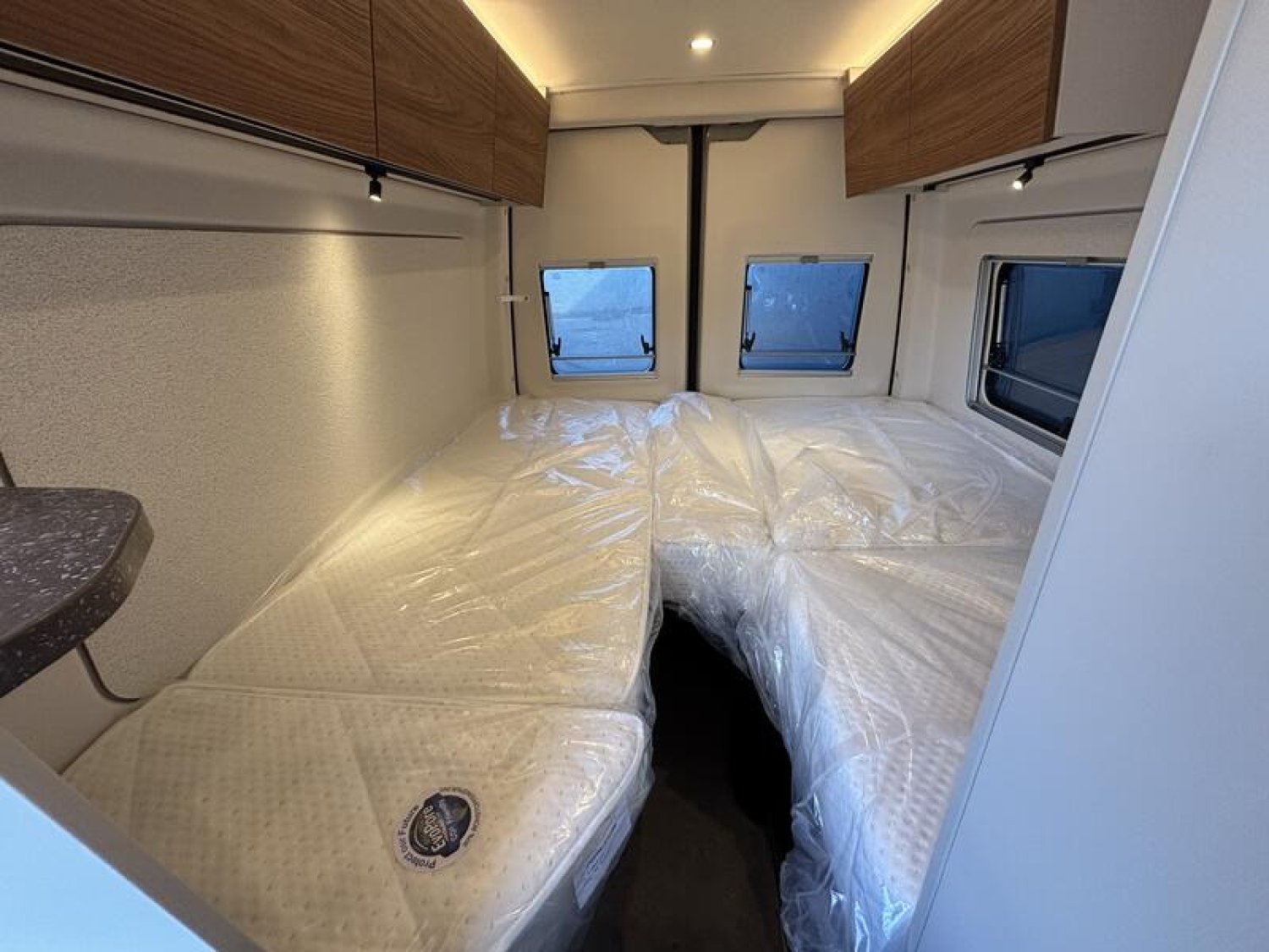 PACK CONFORT CHASSIS Eclairage indirect Led Baies à encadrement Batterie Lithium 100 Ah Extension du plan de travail cuisine Transformation des lits jumeaux en grand couchage arrière Habillage des parois intérieures en tissu Stores plissés occultants cabine Moustiquaire de porte coulissante Frein de parking électrique Intégration pour smartphone Wireless Charging : 1300 €