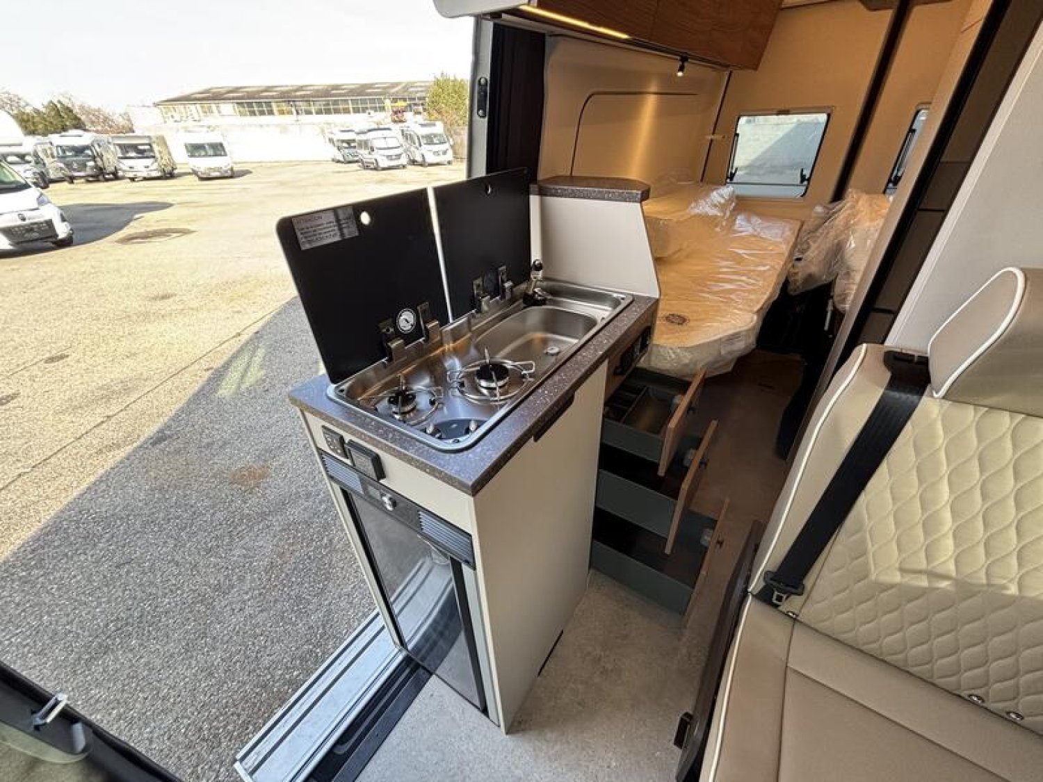 Feux antibrouillard + Couleur extérieure Gris Chinchilla + Toit relevable chauffant Gris Chinchilla + Sellerie Cuir Beige Leather Wave + Phares à LED haute performance 2005€ / Feux antibrouillard avec fonction cornering 290€ + Pack parking avec caméra panoramique 360° + WC Clesana + Burstner connect : 16550 €