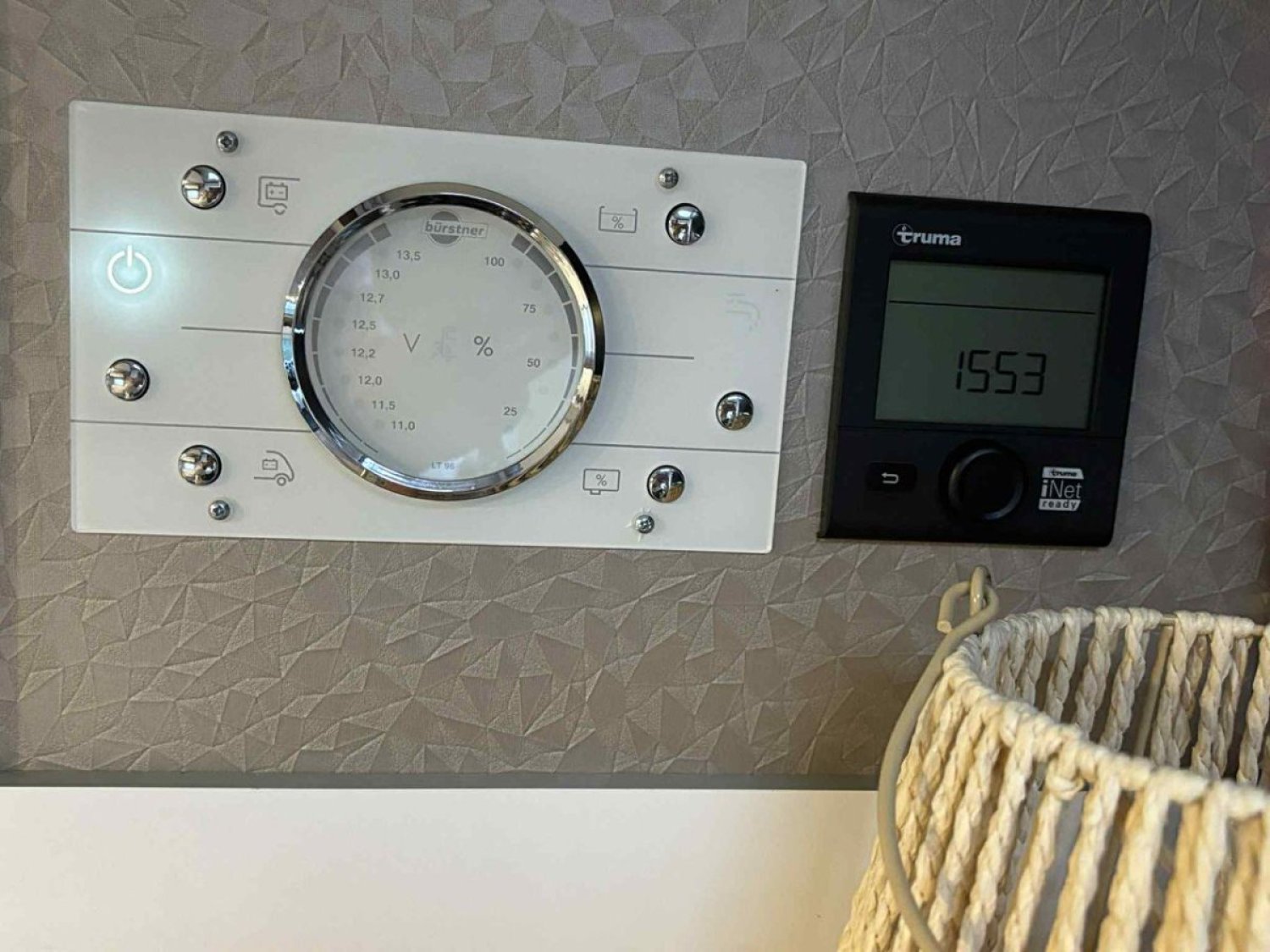 Le camping-car est équipé du chauffage et chauffe-eau TRUMA, d’un double plancher avec rangements, d’une batterie cellule 95 Ah et d’un panneau solaire Skyroof.