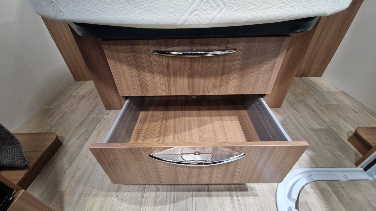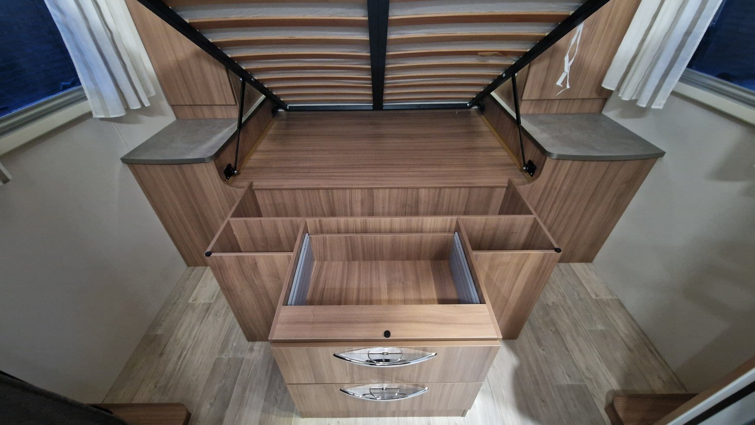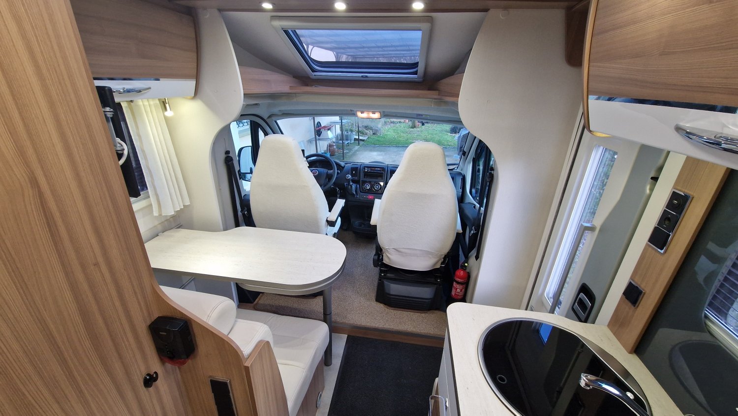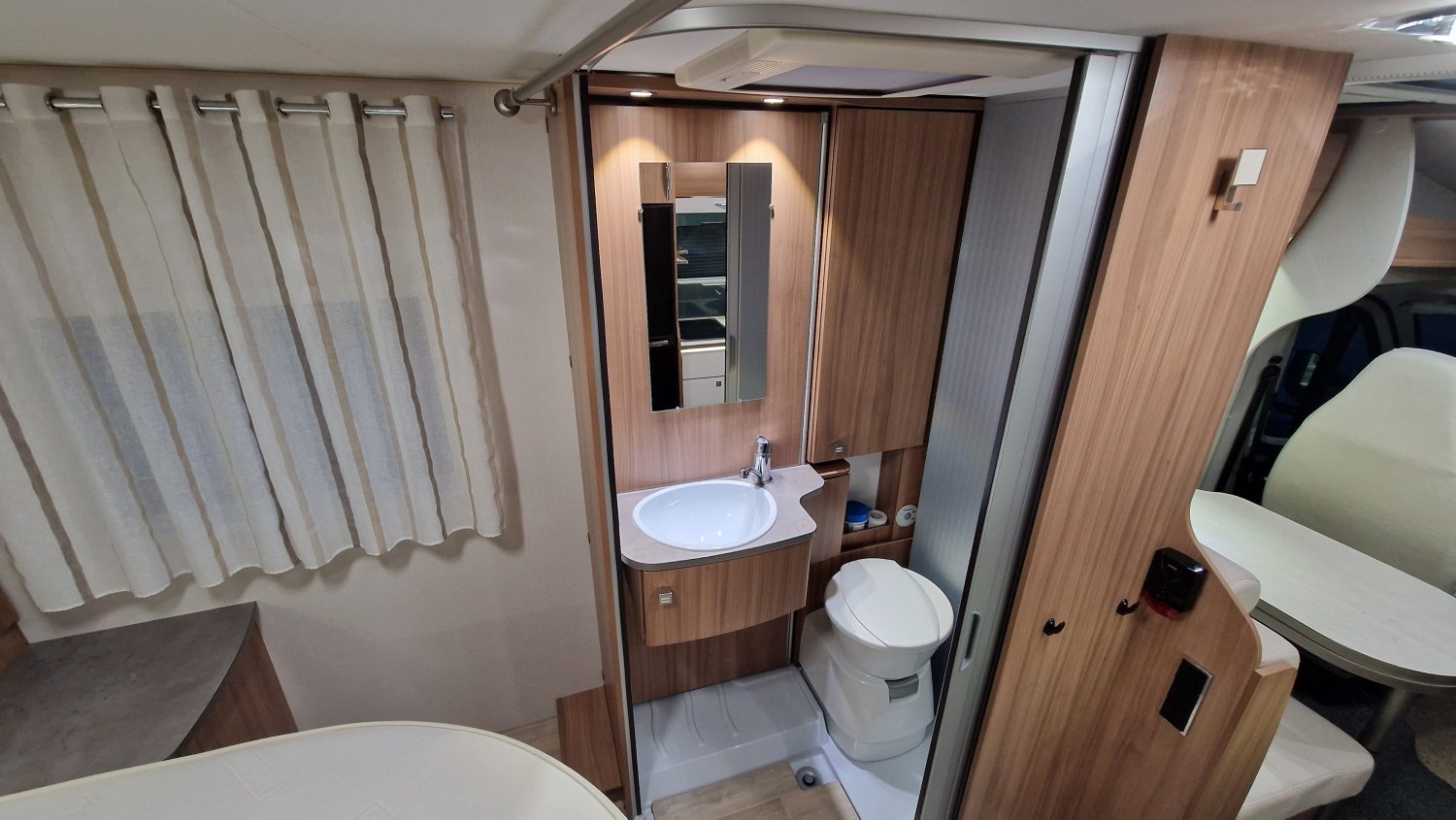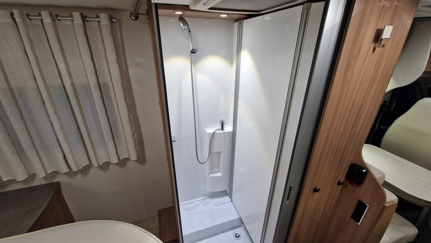 Une conception parfaite pour voyager en couple tout confort toute l’année : véritable couchage lit central permanent + lit d’appoint supplémentaire si nécessaire, cuisine bien équipée, fonctionnelle, avec de multiples rangements, un salon convivial et lumineux (Sun Roof, strapontin et sièges cabine pivotants), et pour compléter la dotation : une salle d’eau astucieuse 2 en 1, convertible douche / WC.