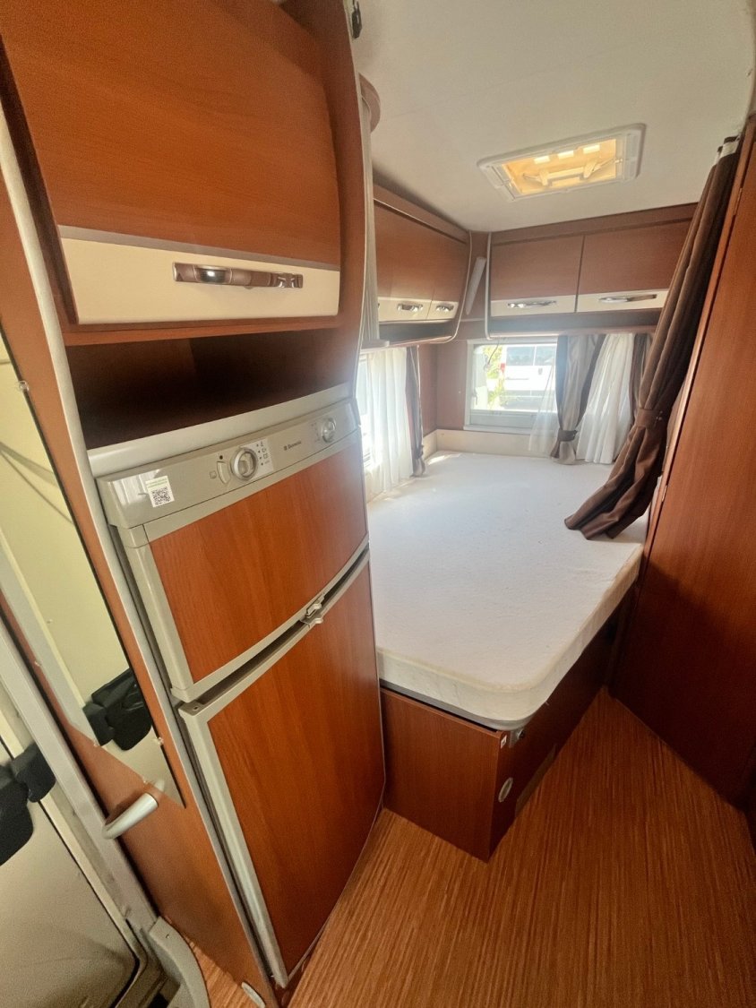 A l’arrière se trouve un superbe Lit à la Française pour 2 personnes avec de multiples placards au-dessus du lit pour un maximum de rangement
