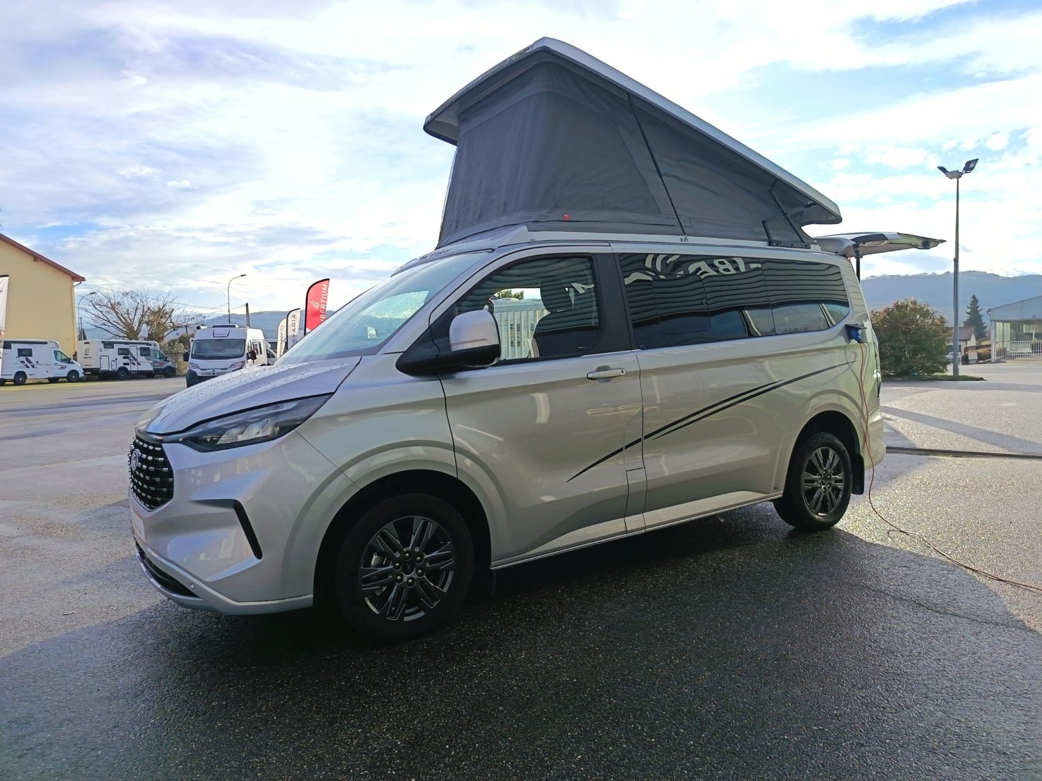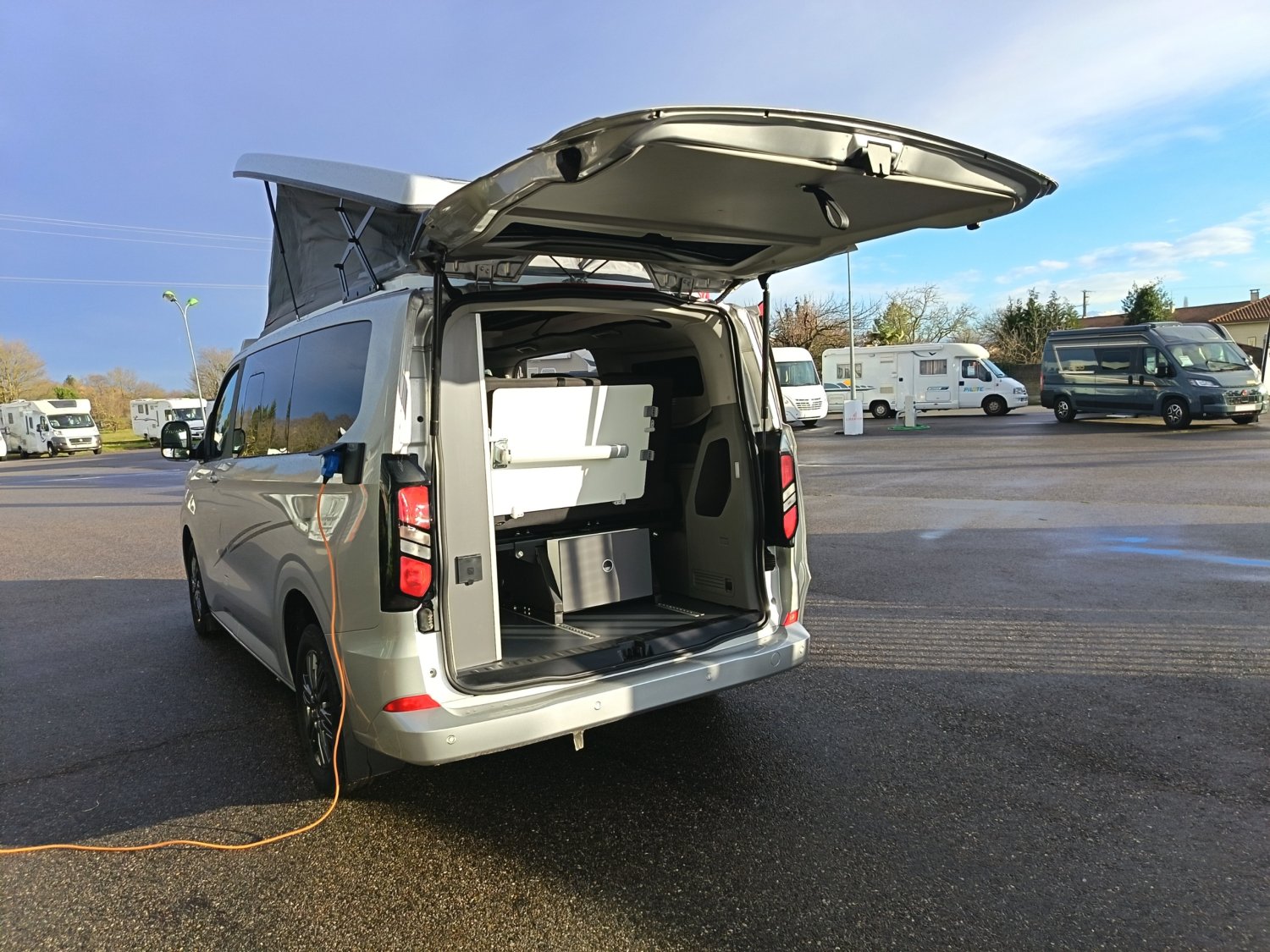 Van aménagé avec une isolation performante, chauffage stationnaire Webasto et homologué 5 places. Grand couchage dans le toit relevable, une banquette facilement transformable en couchage. Véhicule astucieusement aménagé avec de nombres rangement.