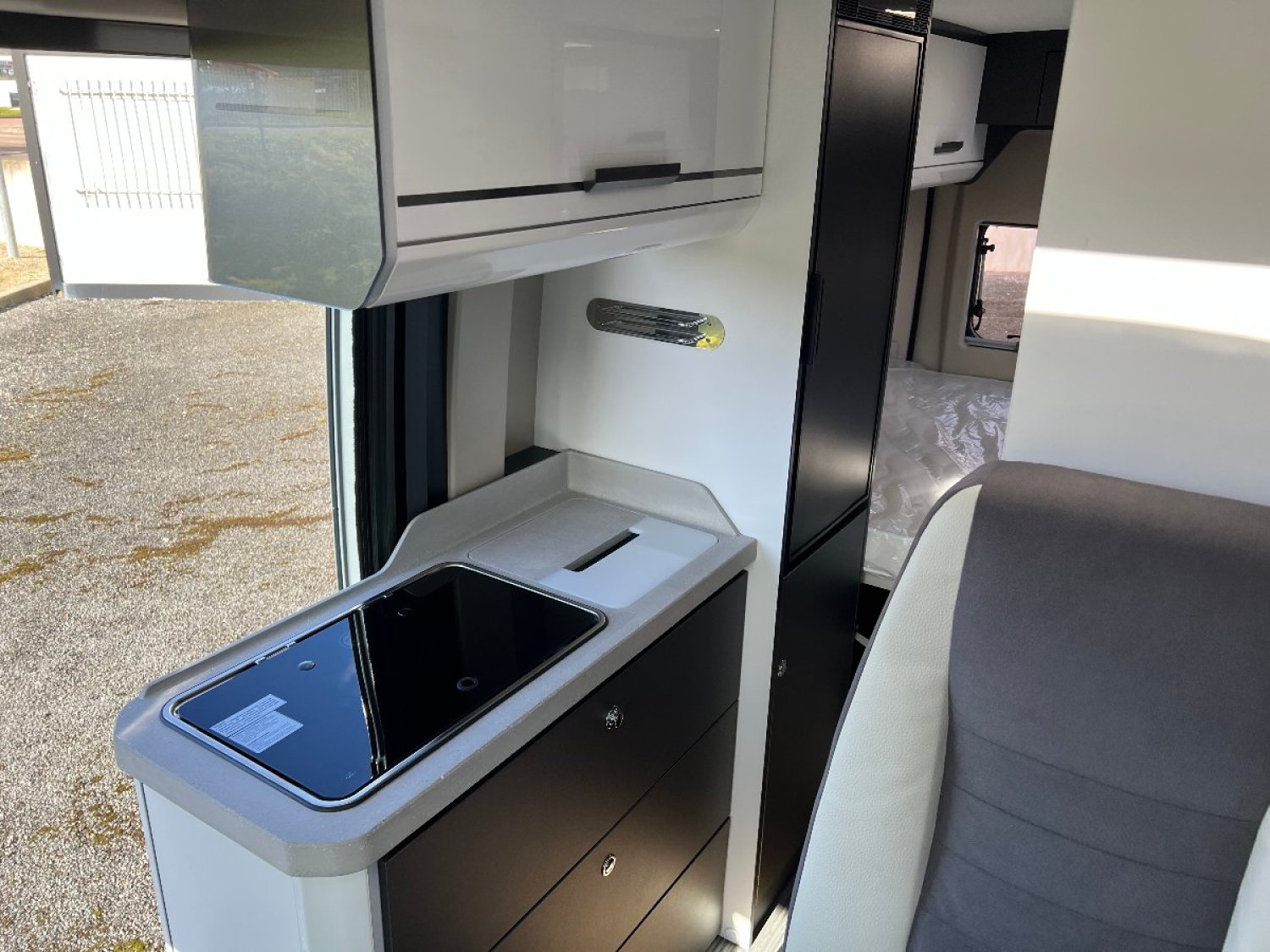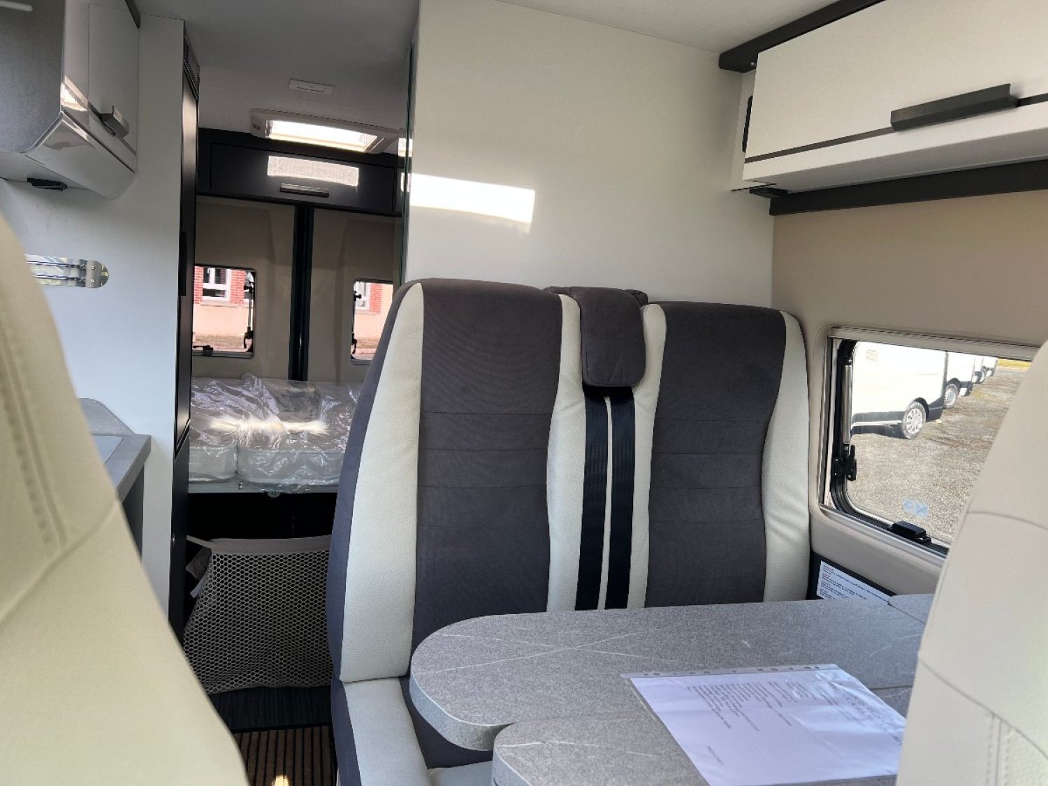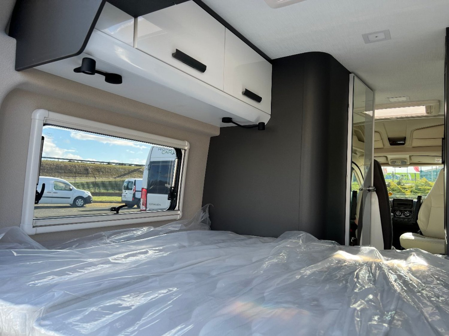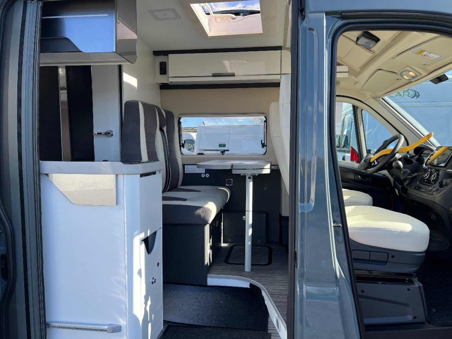 Magnifique Fourgon avec lit transversal arrière ,une salle d'eau avec douche et WC, une cuisine équipée avec de nombreux rangements et un salon avant panoramique.