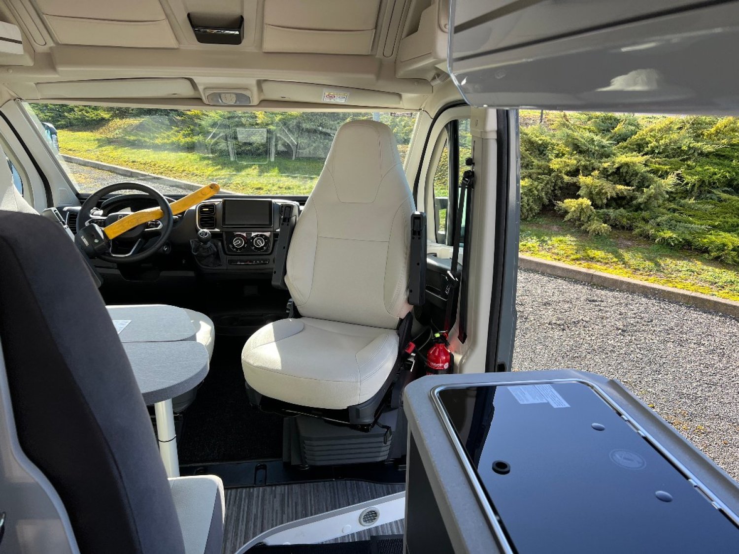 Sièges conducteur et passager tournants, hauteur et accoudoirs réglables.