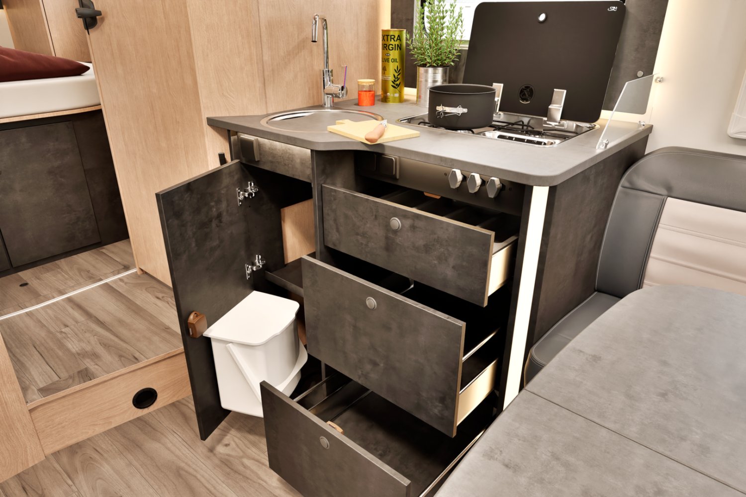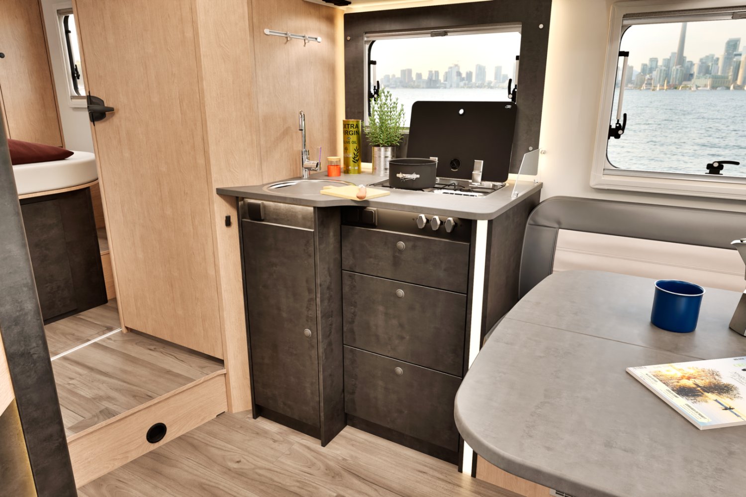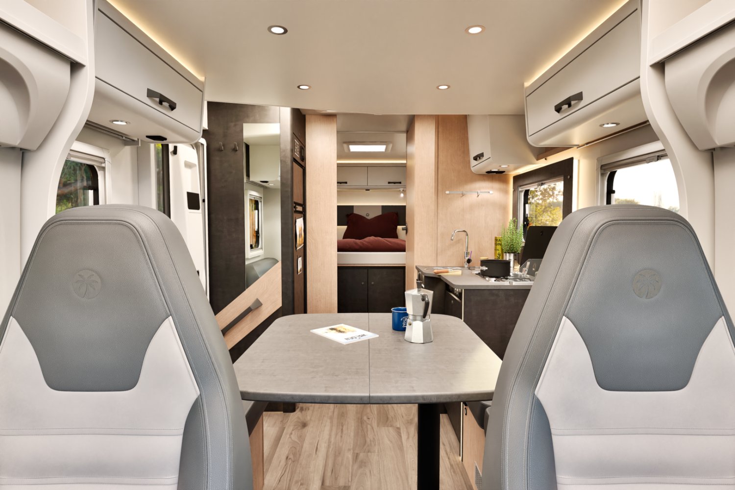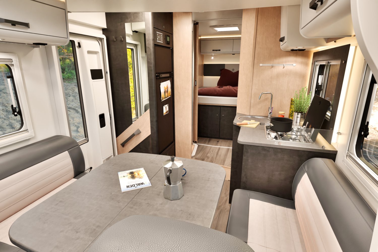 Camping-car Sunlight lit central banquette face-face dispo 04/26 (photos d’illustrations, le store extérieur est en option)
