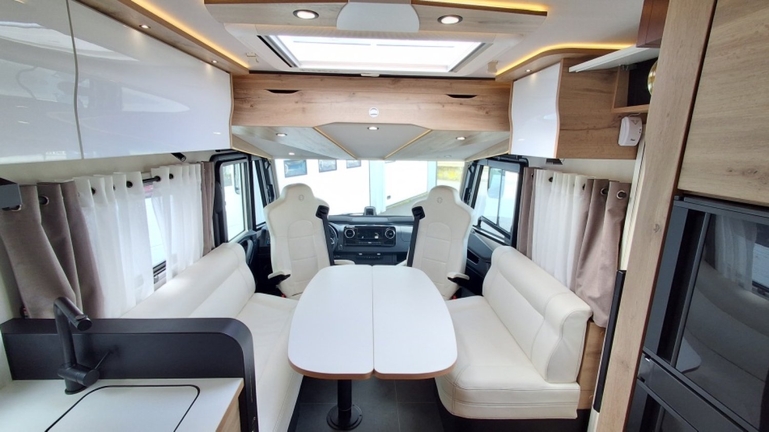 CHÂSSIS ALKO MERCEDES-- SYSTEME DE STABILISATION EN CAS DE VENTE LATÉRAL- ALLUMAGE DES FEUX AUTO-- FREIN A MAIN ÉLECTRIQUE- SIÈGES SKA- CLIMATISATION SEMI-AUTO- SYSTÈME MBUX - CAMERA DE RECUL 360°- ESSUIE GLACES AUTO- SELLERIE CUIR-LIT PAVILLON ÉLECTRIQUE- TOILETTES CÉRAMIQUE- SOG- ÉTENDOIR A LINGE - BATTERIE LITHIUM SUPER B 210A--- CONVERTISSEUR PUR SINUS 1800W-- 2 PANNEAUX SOLAIRES--- DÉROULEUR ELECTRQIE ET EAU INTÉGRÉ ---SYSTÈME DE FILTRATION D EAU AUTONOME ---STORE EXTÉRIEUR ELECTRQIUE- ALARME GAZ- GPL -ATTELAGE--- VERINS HYDRAULIQUE ---