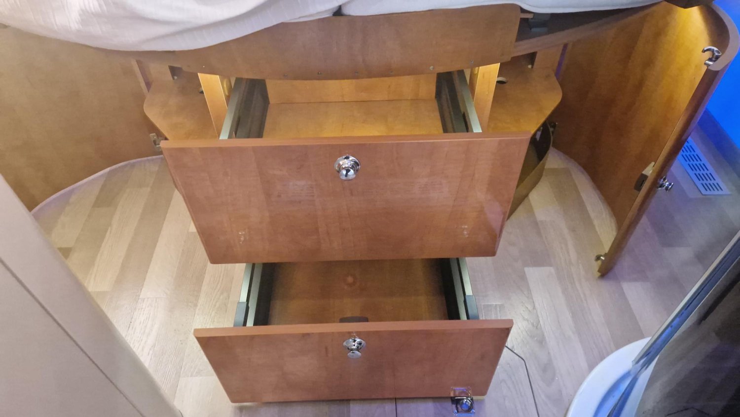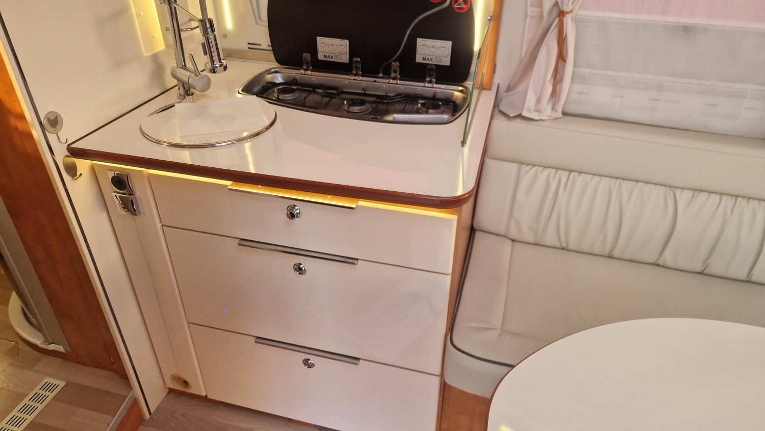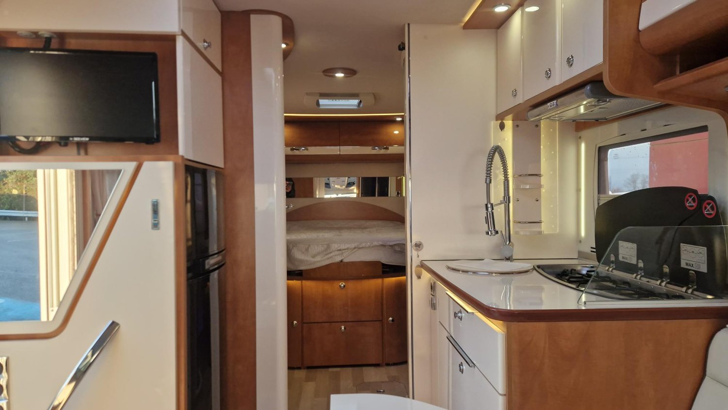 Chauffage ALDE et Châssis ALKO sont l'essence même de ce véhicule en lit central et douche et wc séparés en seulement 7m 09 de long.