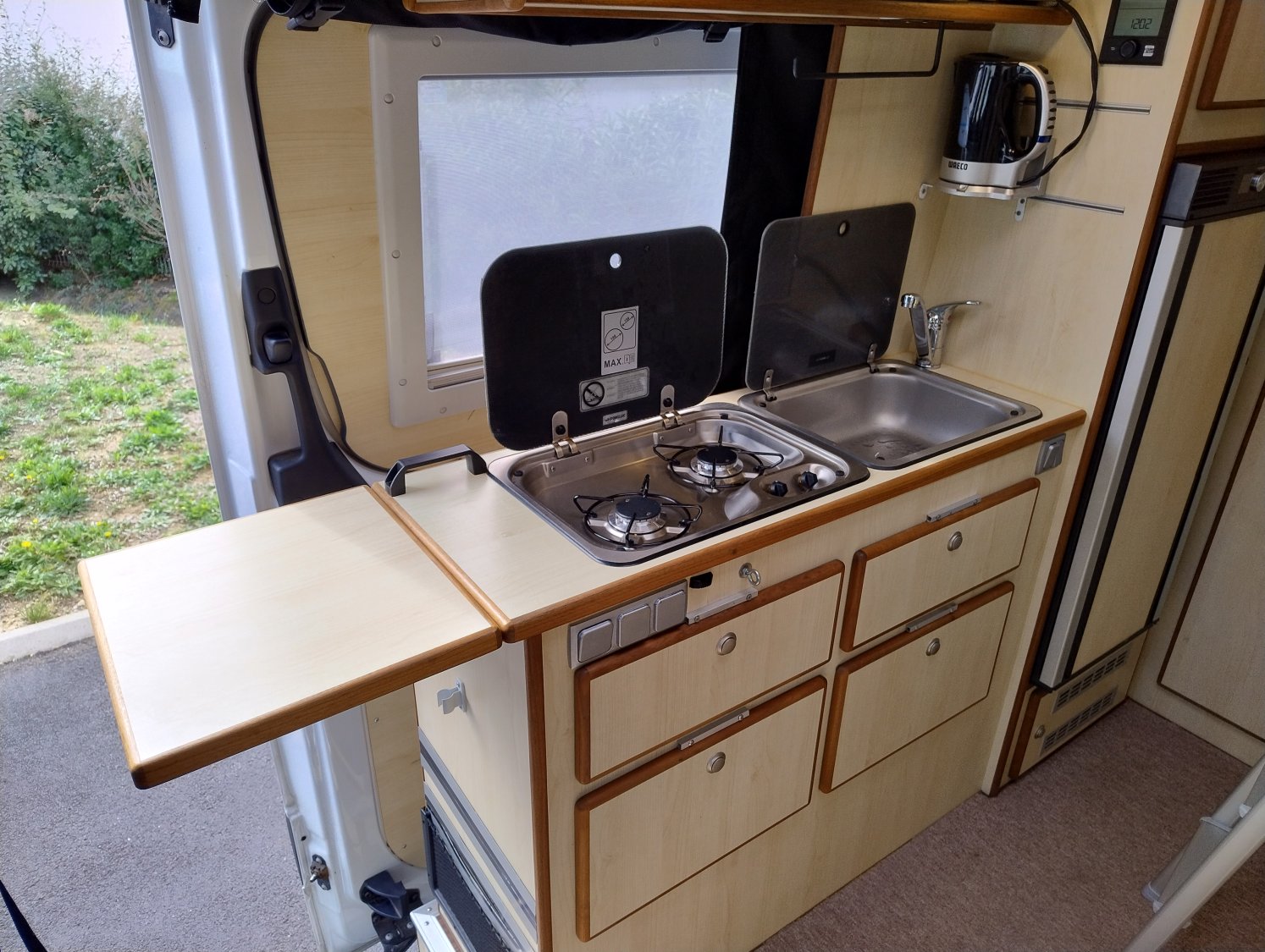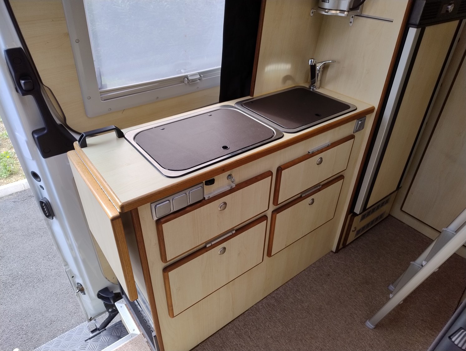 CHAUFFAGE CARBURANT, REFRIGERATEUR/CONGELATEUR, STORE EXTERIEUR 3.5M, PRISE GAZ EXTERIEURE, GAZINIERE 2 FEUX, ECLAIRAGE LED, MOQUETTE CELLULE, MOUSTIQUAIRE DE PORTE CELLULE, VOLET ISOTHERME INTERIEUR, REFRIGERATEUR 12V A COMPRESSION, LANTERNEAU PANORAMIQUE, MARCHEPIED INTÉGRÉ, KIT ALTITUDE POUR CHAUFFAGE CARBURANT, SOG, COMBINE CHAUFFAGE / CHAUFFE-EAU TRUMA D6 GASOIL AVEC KIT ALTITUDE, DOUCHETTE EXTERIEURE EAU CHAUDE ET FROIDE