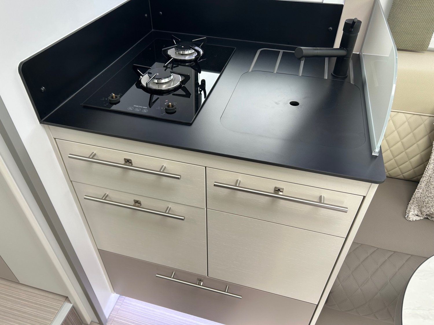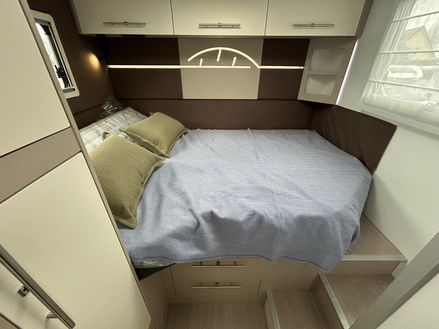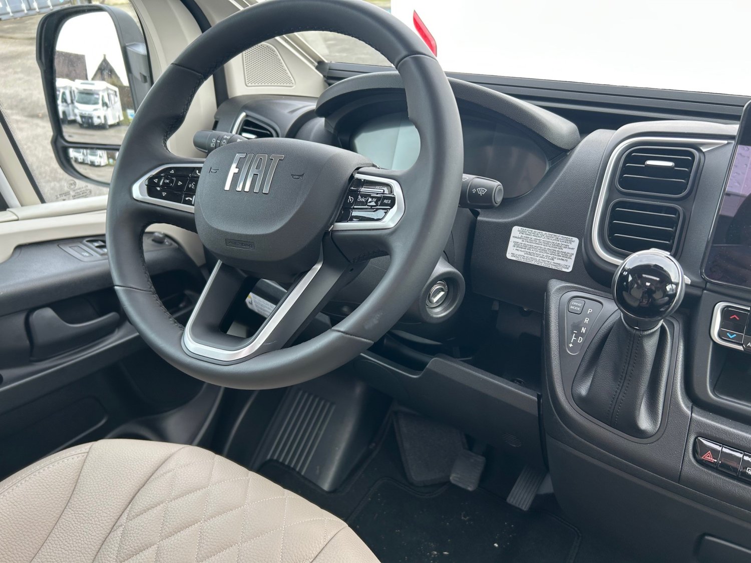 Ce modèle repose sur un Fiat Ducato 2.2 L de 140 ch, reconnu pour sa fiabilité et son agrément de conduite. Il est équipé d’une boîte automatique, idéale pour les longs trajets comme pour les manœuvres urbaines.