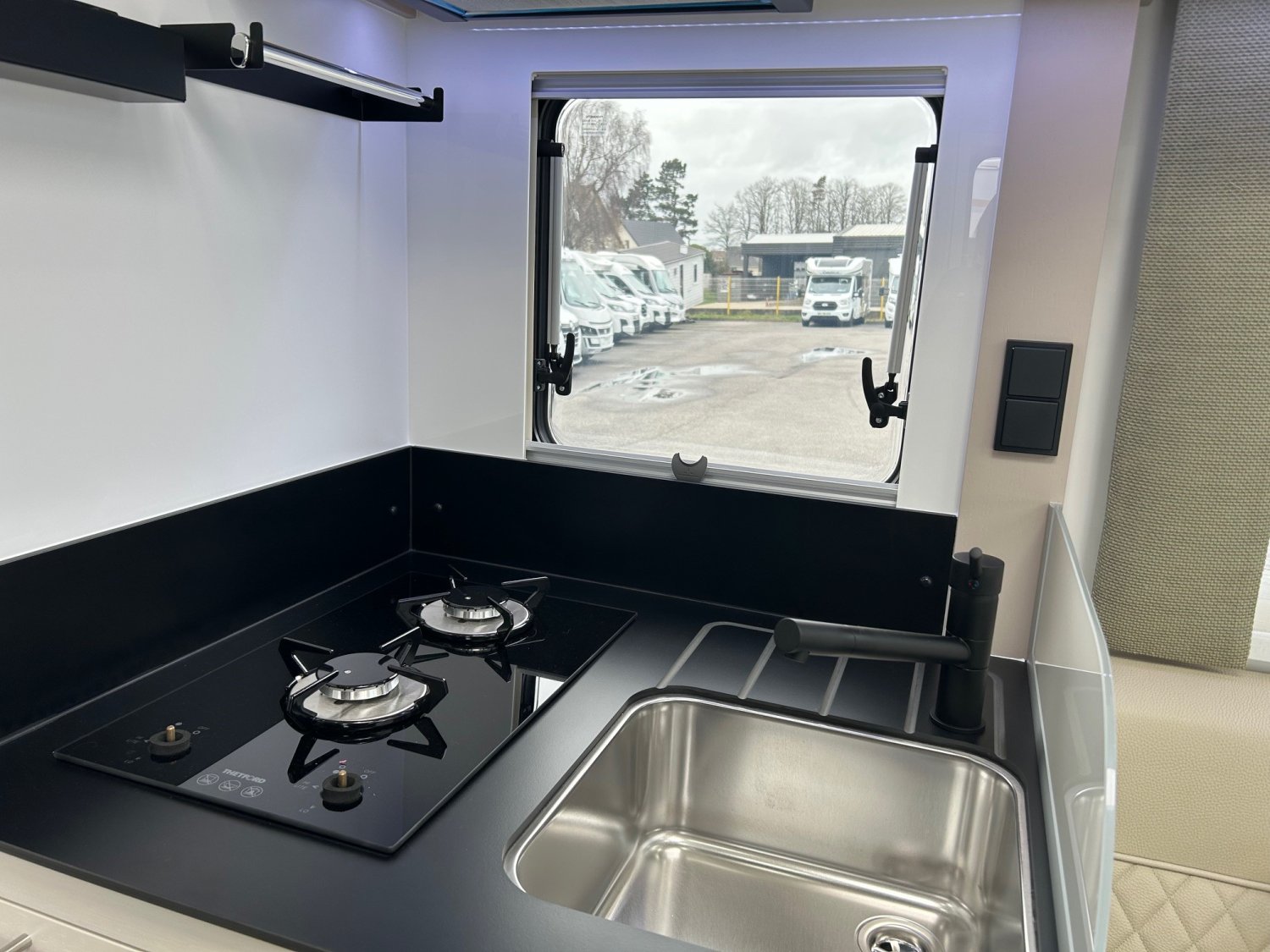 Son PTAC de 3 500 kg et son PTRA de 5 500 kg permettent de voyager sereinement, même chargé. Les feux avant Full LED améliorent la visibilité et renforcent la modernité du véhicule.