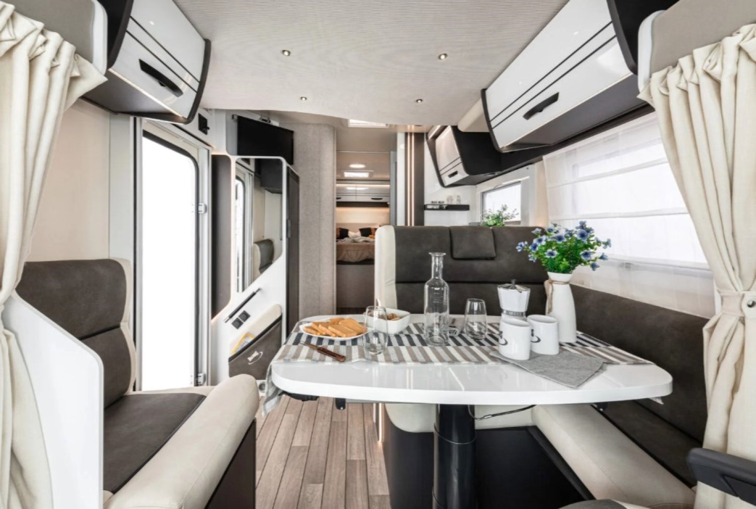 La cellule est signée McLouis, modèle MC4 379. Il s’agit d’un camping-car profilé avec lit central offrant 5 couchages et 5 places carte grise. L’agencement intérieur est conçu pour offrir confort et fonctionnalité à bord 🛋️.