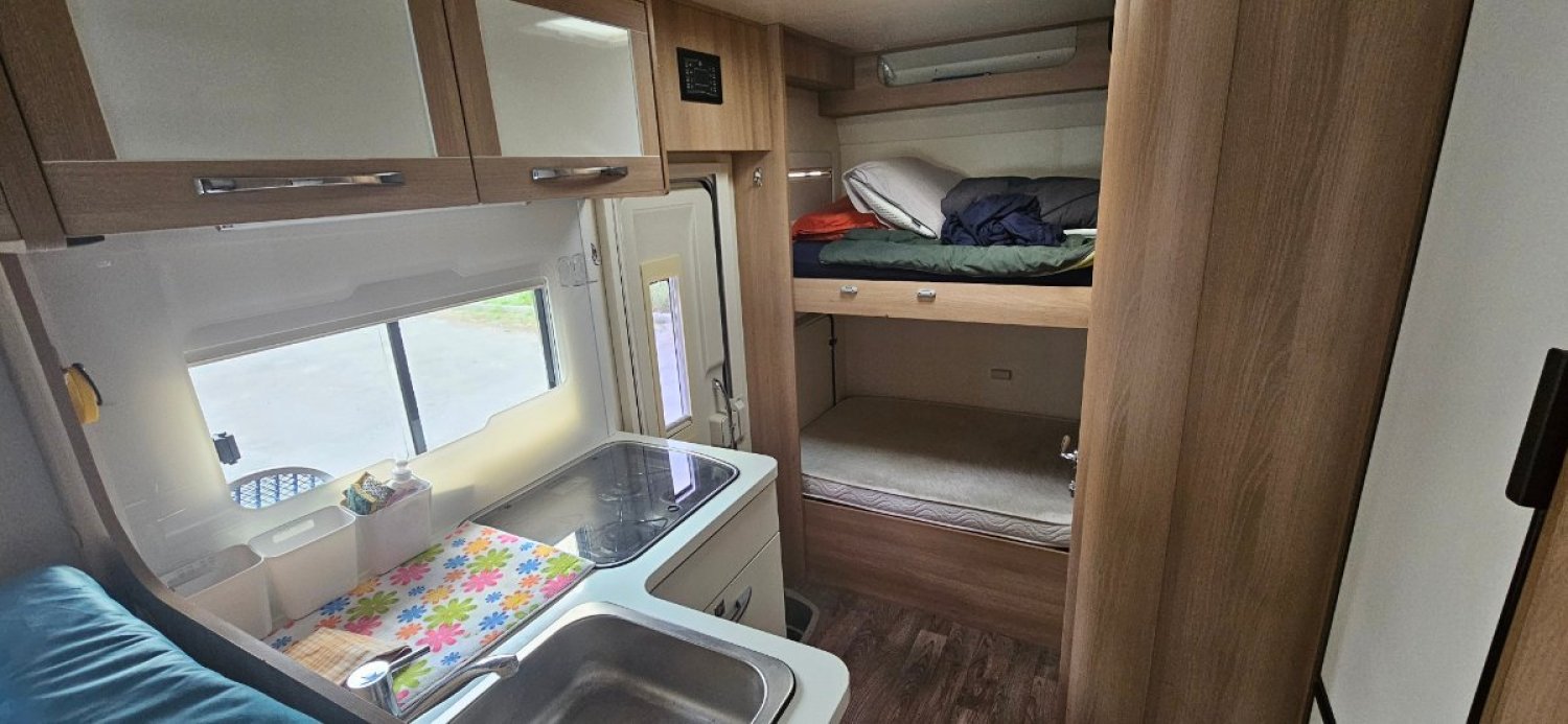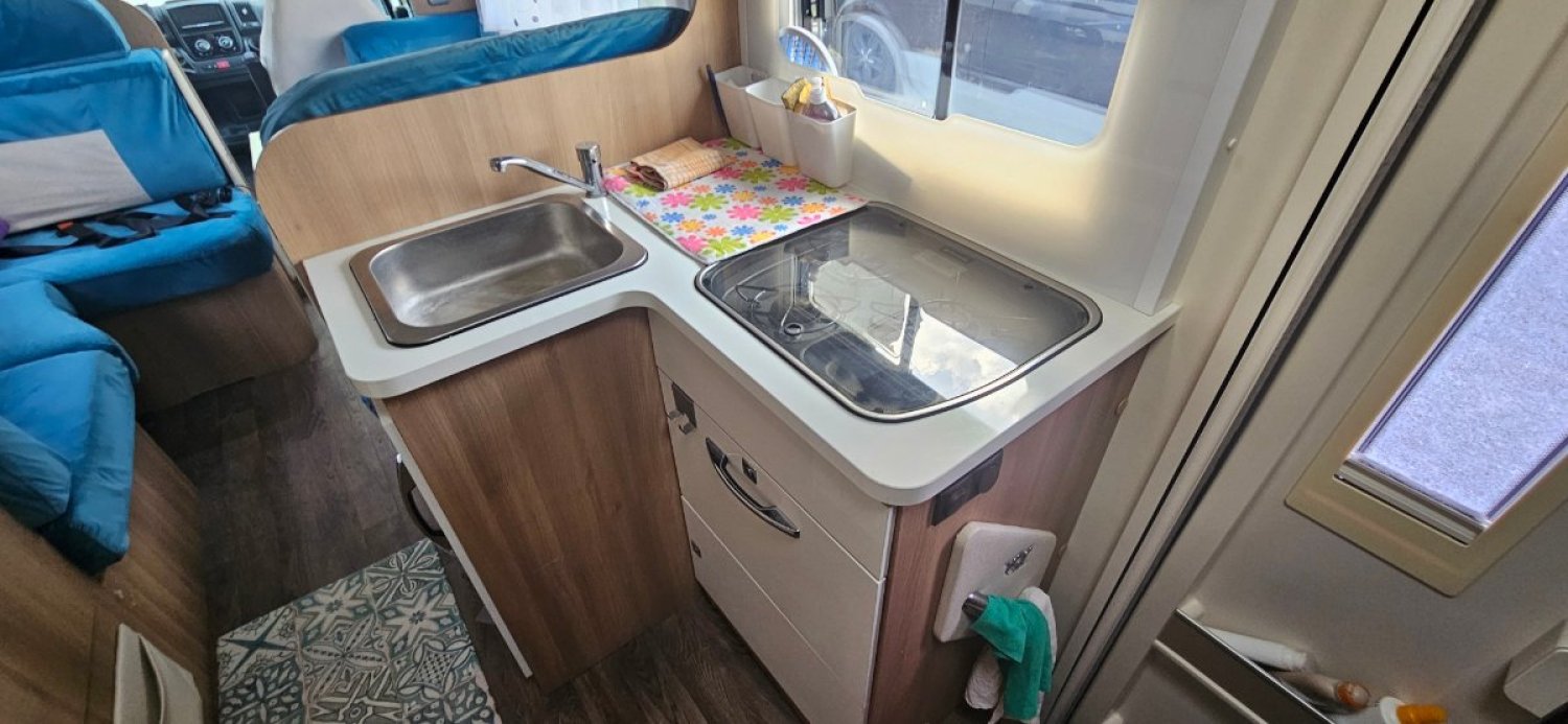 Camping car très agréable / spacieux pour 4 personnes avec son grand salon, sa cuisine d'angle, et sans avoir à défaire / refaire des lits au quotidien ...