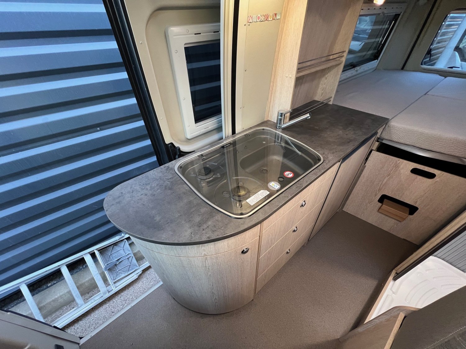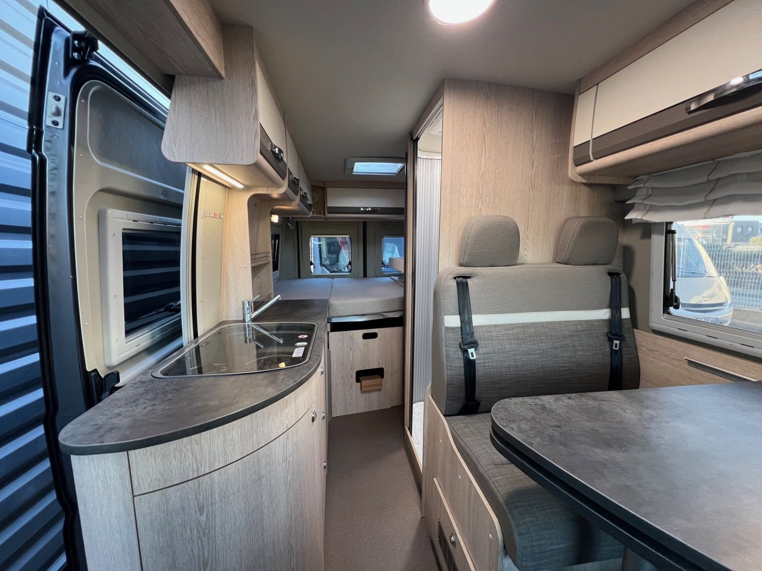 Un fourgon du spécialiste Allemand, en 6 mètres, salle de bain vario, de nombreux rangements et bien équipé.