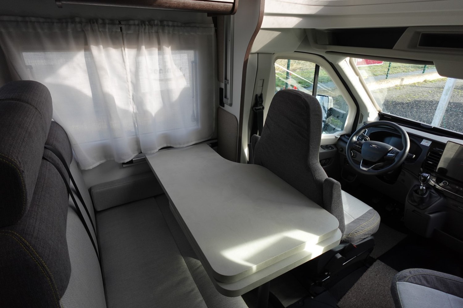 (Moteur 165 CV, Panneau solaire 200 W avec régulateur MPPT, Rideaux occultation vitres cabine, Porte cellule avec fenêtre + poubelle + moustiquaire, Lumière extérieure LED, Télévision 20 pouces, Antenne TV omnidirectionnelle, Pré-installation 2ème batterie, Radar de recul, Store extérieur, Eclairage intérieur placard, Housses de cabine, Kit départ)