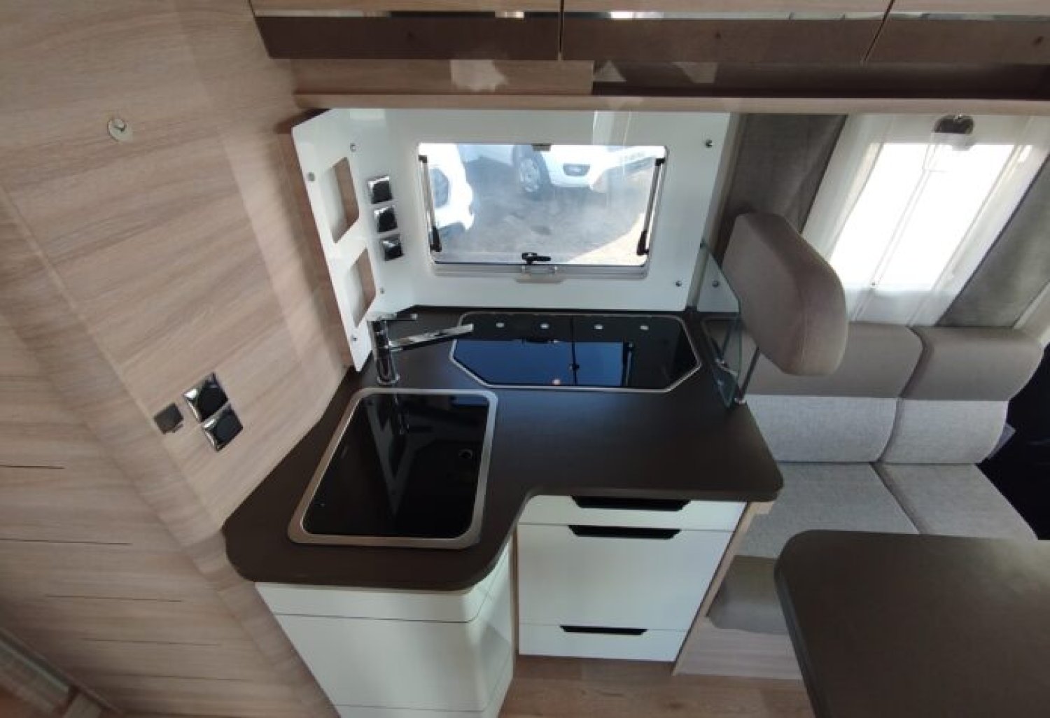 L'intégral Rapido 886 F est un intégral de standing aux finitions soignées. En lit central, lit de pavillon et salon face/face, ce véhicule en état impeccable est remarquablement bien équipé.
