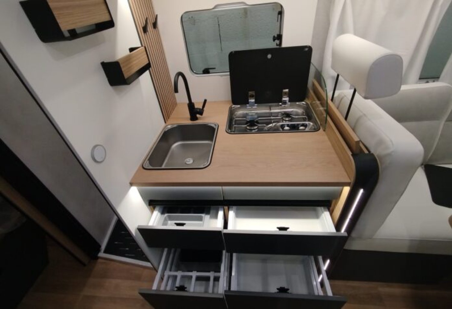 - Eclairage, rail et prise 220 V en soute