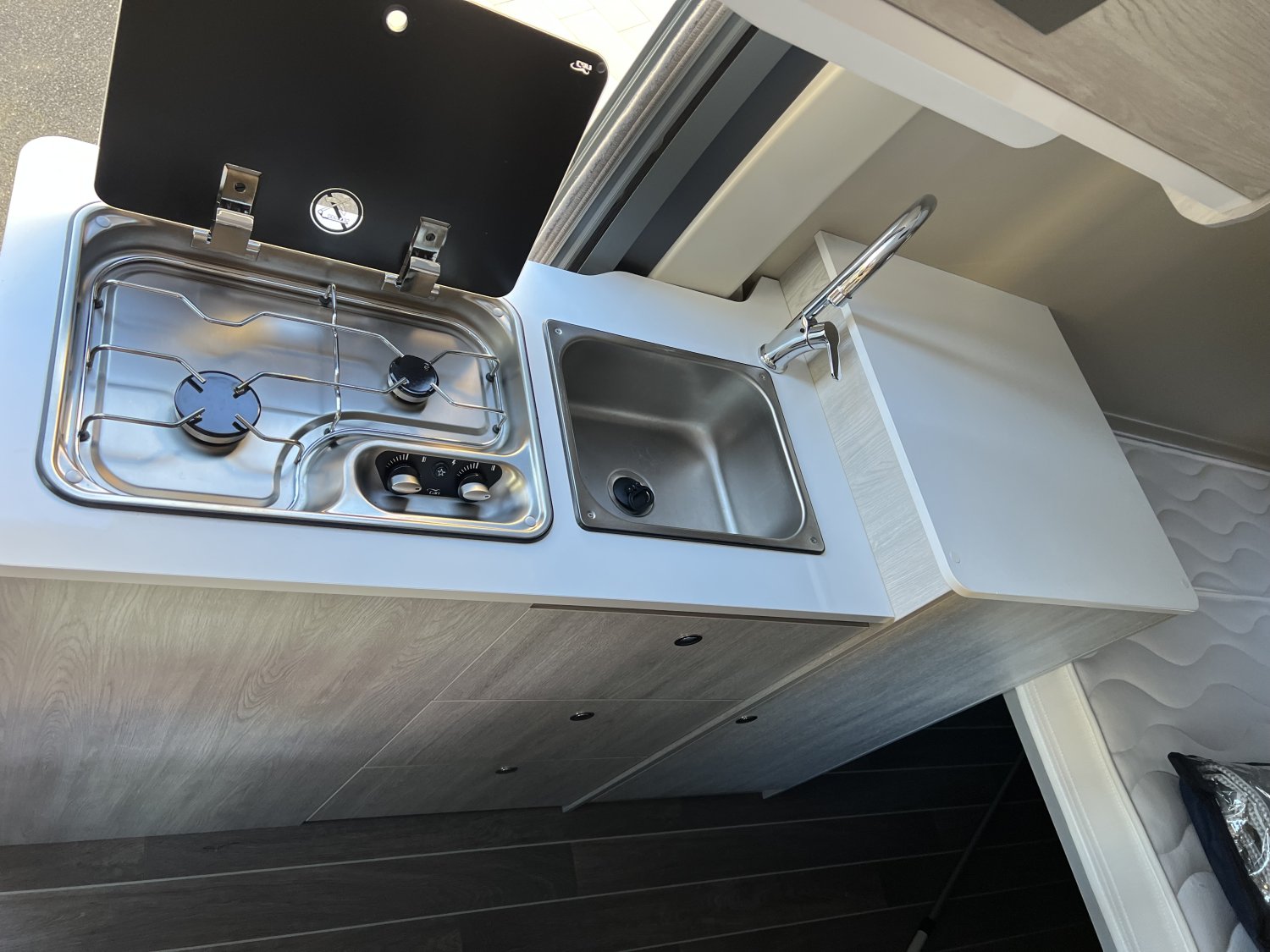 Cuisine équipée, espace nuit confortable, rangements bien pensés — tout est là pour vivre confortablement même en plein cœur de la nature.