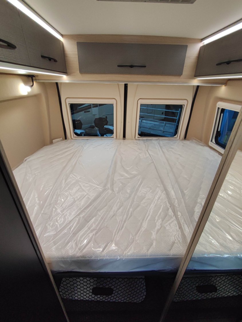 Couchage principal, sommier à lattes 194 cm x 147 cm