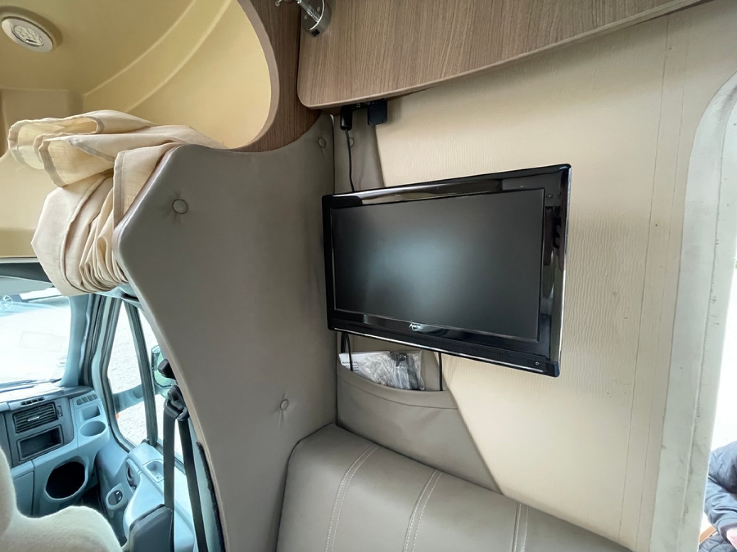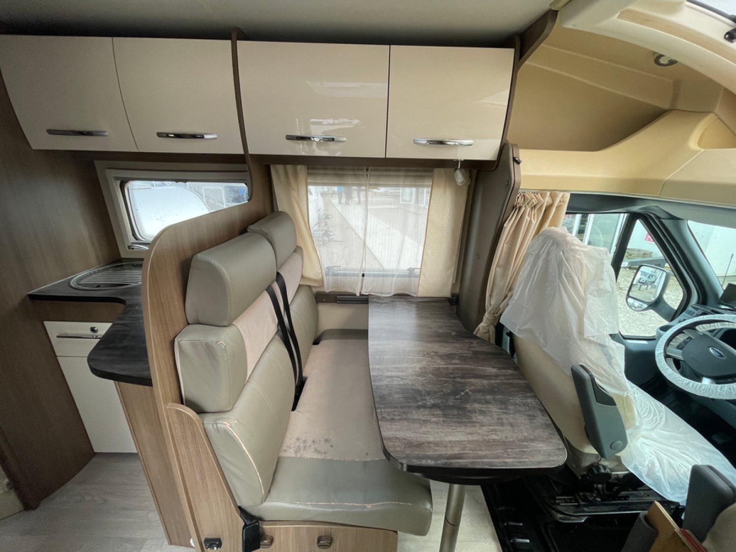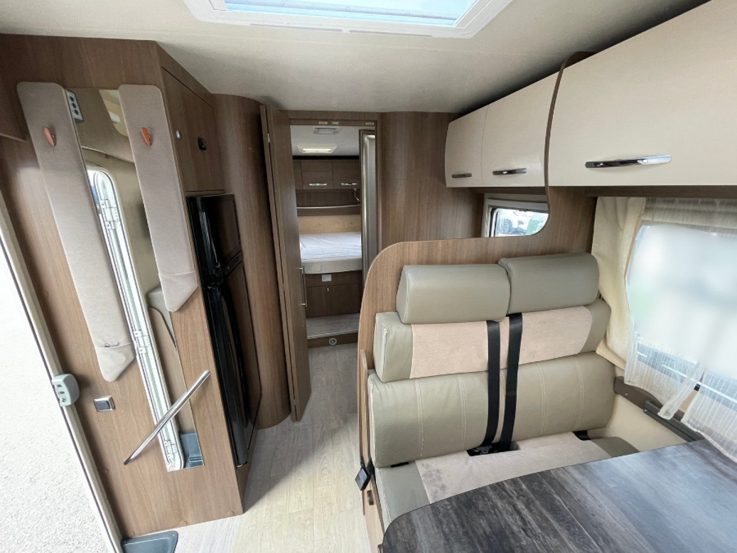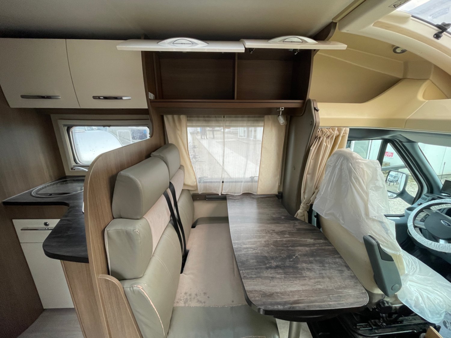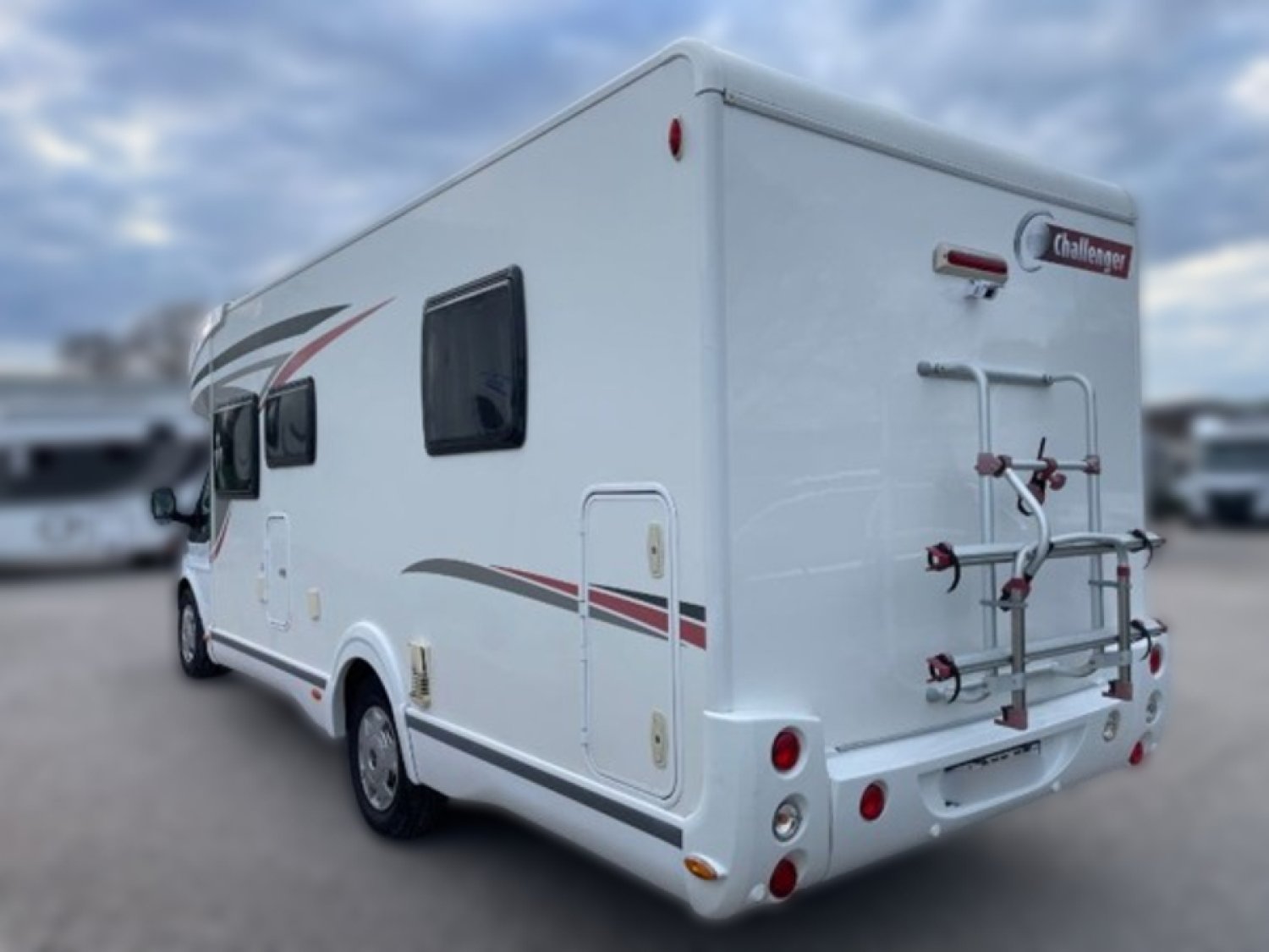 Magnifique camping-car profilé d’occasion Challenger Birthday 58 de 2013 sur Ford Transit 2.2L 140CV, 4 places carte grise et couchage, 7.25 m, bien équipé (Chauffage / Chauffe-eau, Store extérieur, Panneau solaire…).