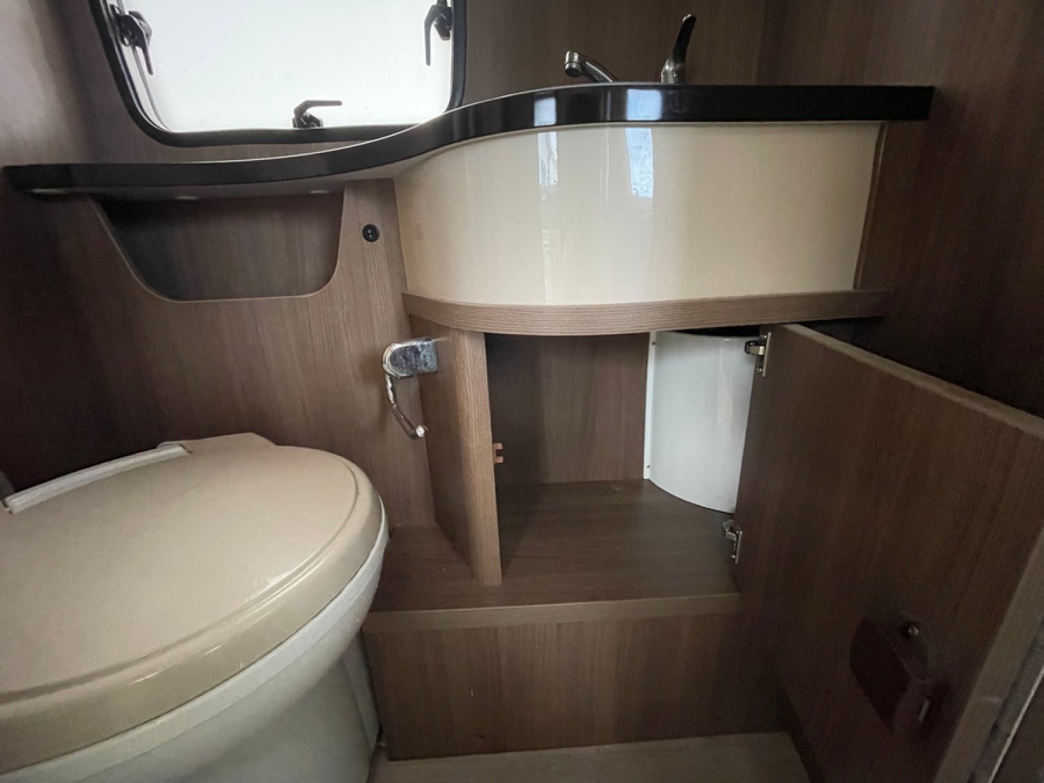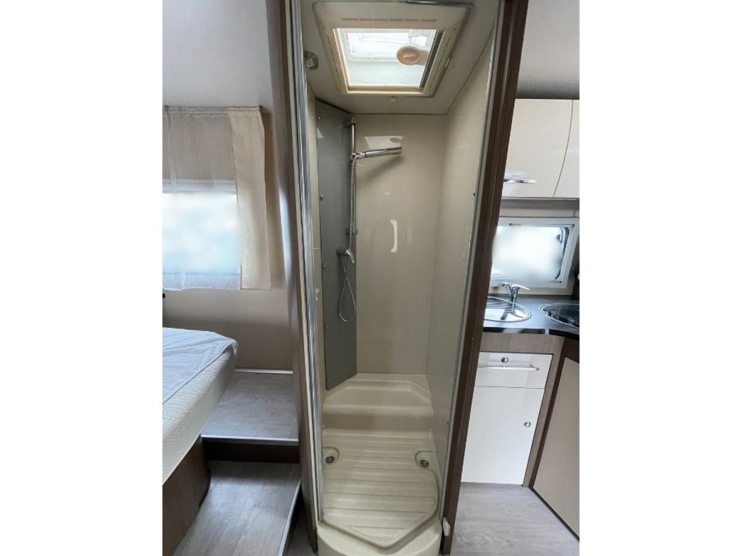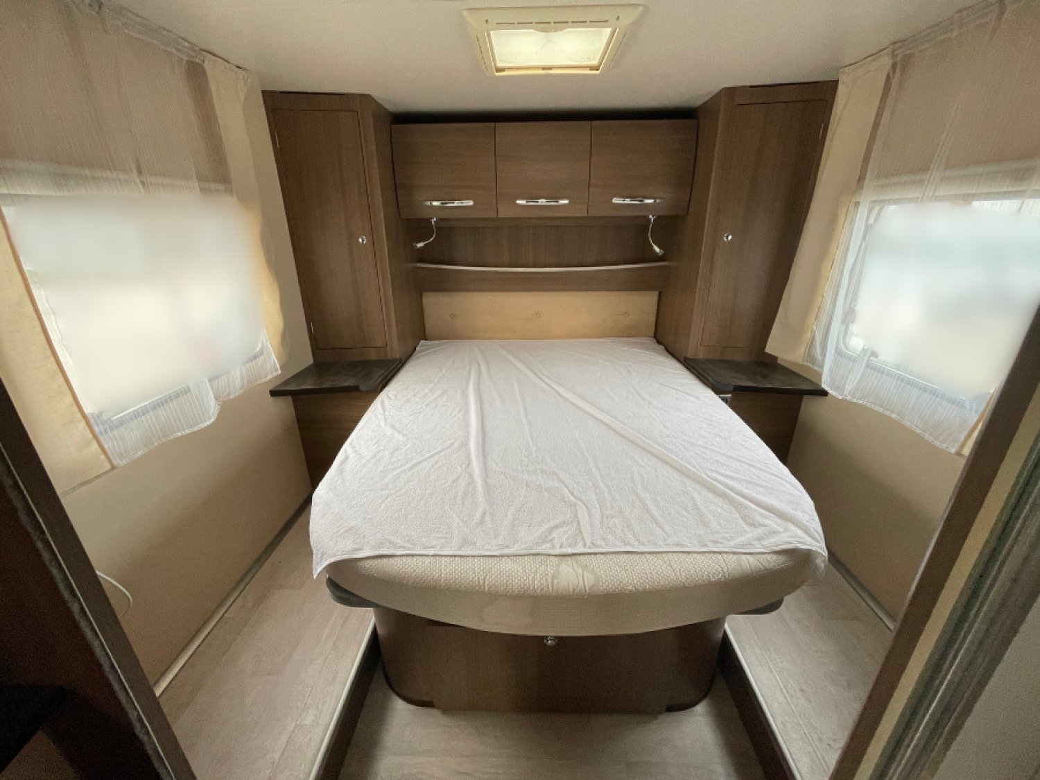 Ce camping-car vous fera bénéficier d’un joli coin dinette transformable en couchage supplémentaire, pour passer de bons moments en toute convivialité. Vous profiterez également d’une cuisine pratique et fonctionnelle avec un réchaud 2 feux, évier inox, couvercles en verre et un grand réfrigérateur congélateur de 145L. Il possède aussi un coin salle de bain avec WC à cassette, lavabo, miroir et une grande douche indépendante. A l’arrière, c’est un lit central avec porte d’intimité et penderie pour passer de belles nuits agréables et confortables. Sans oublier ses nombreux rangements astucieux et sa grande soute pour emporter vos affaires de camping en toute sécurité.
