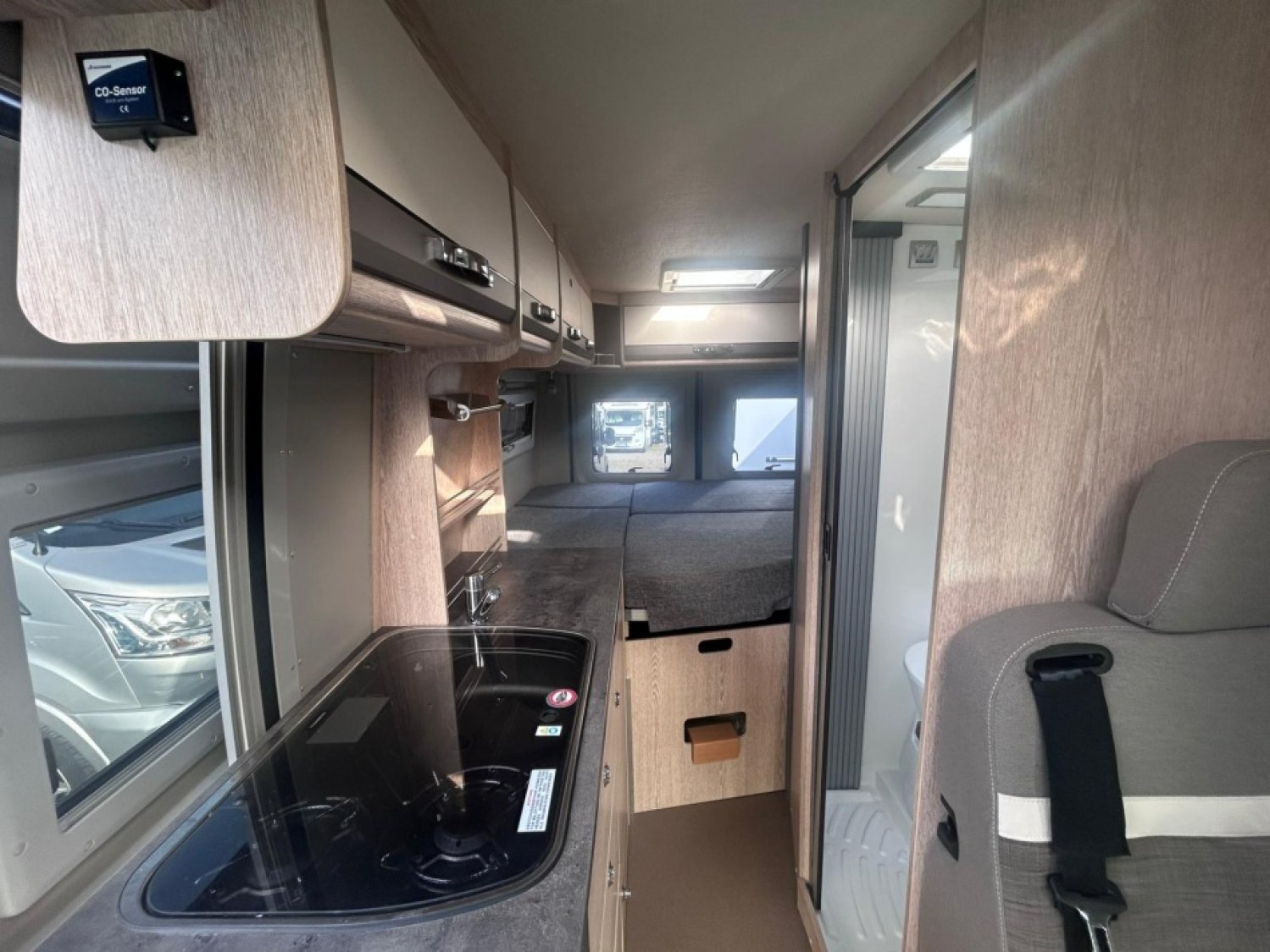 Le Pössl Summit 600 Plus séduit par son intérieur moderne et fonctionnel, avec une douche spacieuse et confortable qui apporte un vrai plus pour voyager en toute autonomie. Son aménagement optimisé crée une ambiance élégante et pratique, idéale pour la vie à bord.