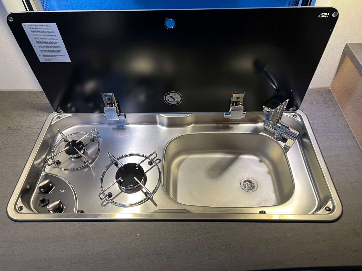 - Plaque de cuisson 2 feux avec allumage piézo et couvercle en verre