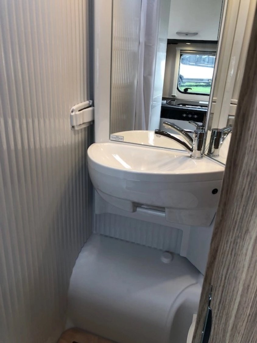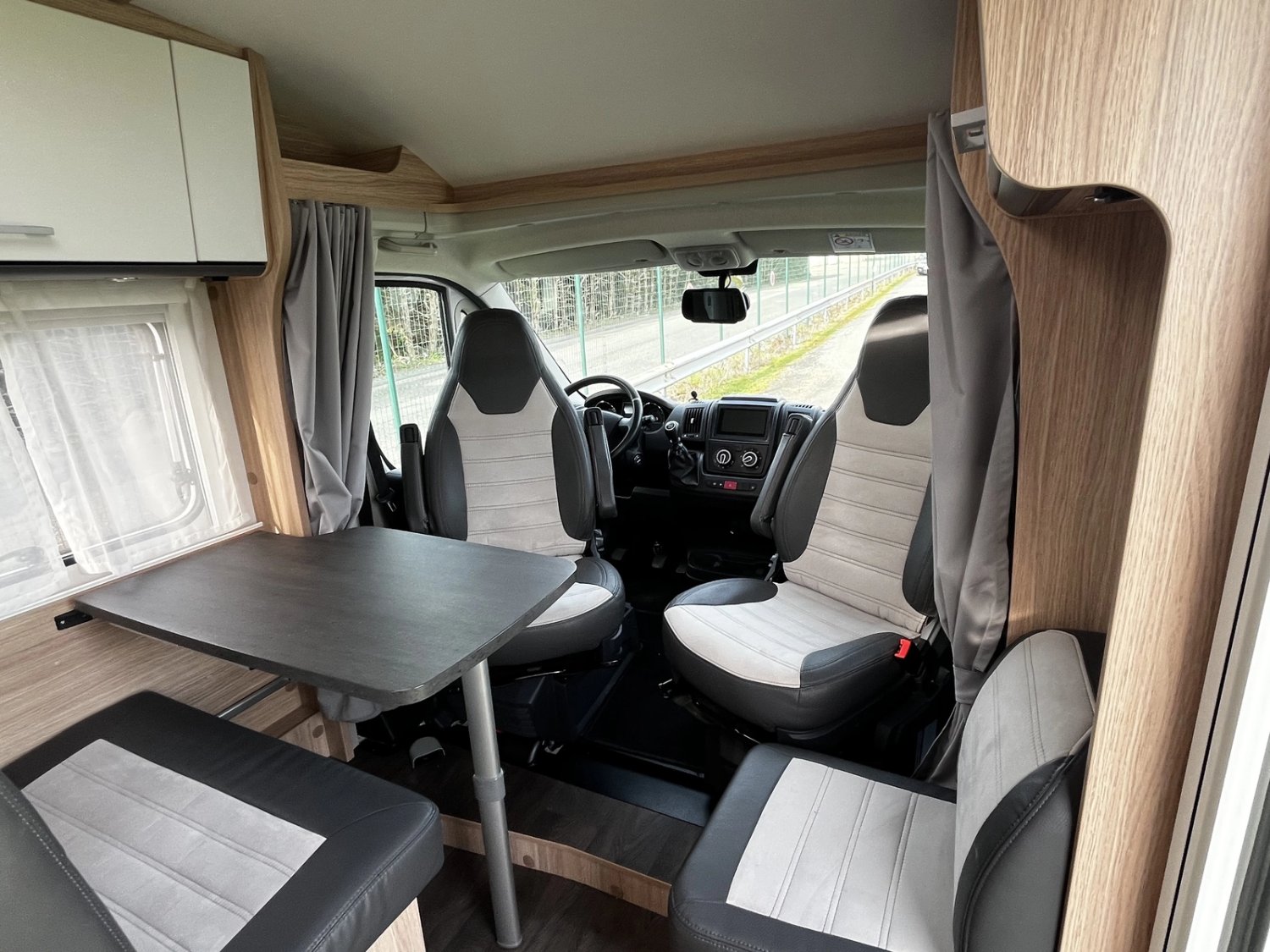o Lanterneau panoramique au-dessus de la dînette o Lanterneau transparent 40 x 40 o Habillage des parois de douche o Miroir avec éclairage indirect et patères o Prise électrique supplémentaire dans le placard de pavillon au dessus du bloc cuisine o Prise électrique dans la soute arrière