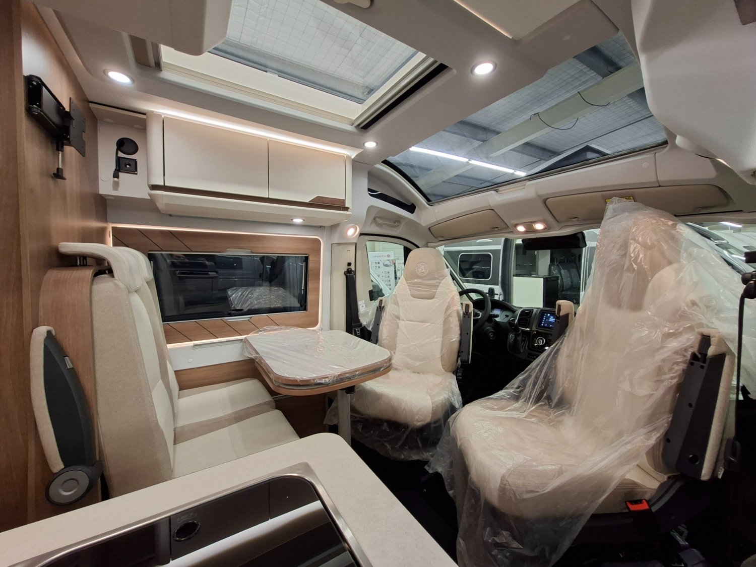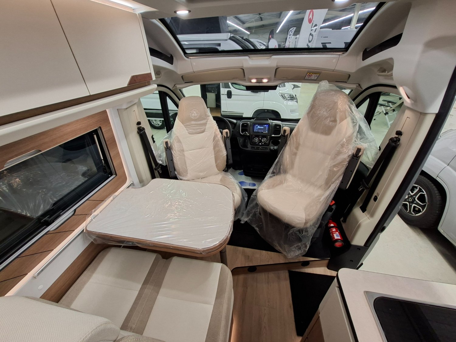 DEUX BATTERIES CELLULE AGM 80AH, MARCHE PIED ELECTRIQUE, PRISES USB/12V ET 230V, REFRIGERATEUR COMPRESSION 146L, MOUSTIQUAIRE DE PORTE CELLULE, COMMANDES RADIO DEPORTEES DANS LA CELLULE, PACK CONFORT + :, COMMANDES AU VOLANT POUR RADIO, PNEUS ALL SEASON 3PMSF, TARCTION+ HILL DESCENT, CAMERA DE RECUL, 2° CLES PLIP, JANTES ALU 16'', VOLANT CUIR, TPMS, FEUX AVANT 100% LED, FREIN A MAIN ELECTRIQUE, STATION MULTIMEDIA PIONEER 6.8'', STORES CABINE PLISSES, DOUCHETTE EXTERIEURE AVEC EAU CHAUDE, FINITION SAPHIR :, PARE CHOC AVANT COULEUR CARROSSERIE, FEUX ANTIBROUILLARD, PEINTURE METAL, TOIT PANORAMIQUE, RENFORT SUSPENSIONS PNEUMATIQUES ARRIERE SANS COMPRESSEUR, COUCHAGE DINETTE 1 PLACE, PANNEAU SOLAIRE 150W, PRISE GAZ EXTERIEURE, TRUMA COMBI 4 DIESEL AVEC KIT ALTITUDE